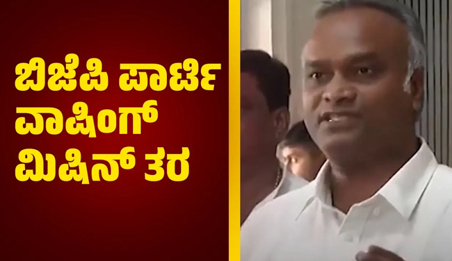 ಬೆಂಗಳೂರು, ನ. 29: ‘ಬಿಜೆಪಿ ಒಂದು ರೀತಿಯಲ್ಲಿ ವಾಷಿಂಗ್ ಮಷಿನ್ ಇದ್ದಂತೆ. ಯಾರು ಏನೇ ತಪ್ಪು ಮಾಡಿದ್ದರೂ ಅವರು ಬಿಜೆಪಿ ಶಾಲು ಅಥವಾ ಕೇಸರಿ ಶಾಲು ಧರಿಸಿದರೆ ಸಾಕು ಎಲ್ಲವೂ ಸ್ವಚ್ಛ ಆಗಿಬಿಡುತ್ತವೆ’ ಎಂದು ಕೆಪಿಸಿಸಿ ಸಂವಹನ ವಿಭಾಗದ ಮುಖ್ಯಸ್ಥ ಹಾಗೂ ಮಾಜಿ ಸಚಿವ ಪ್ರಿಯಾಂಕ್ ಖರ್ಗೆ ಲೇವಡಿ ಮಾಡಿದ್ದಾರೆ.