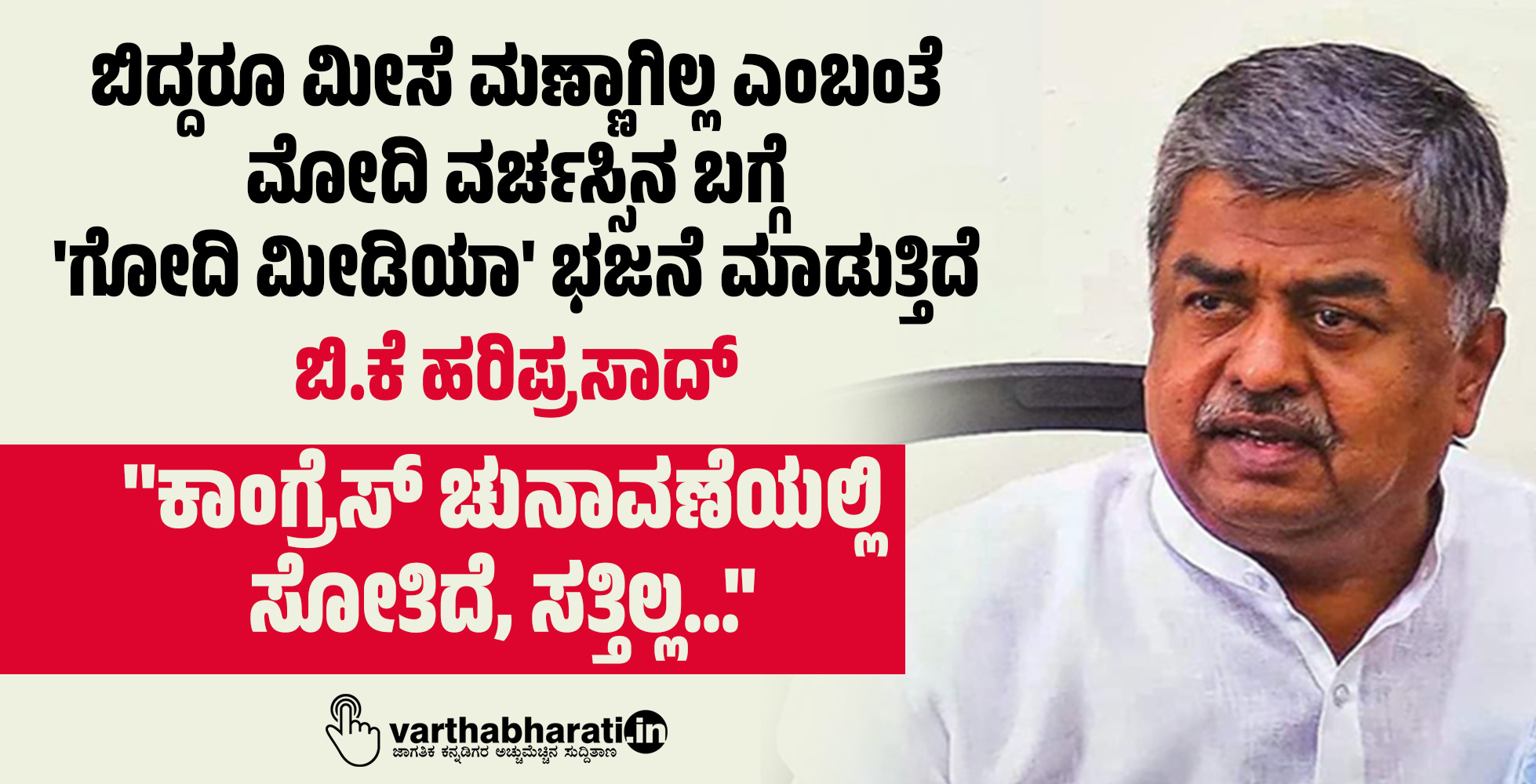 ಬಿದ್ದರೂ ಮೀಸೆ ಮಣ್ಣಾಗಿಲ್ಲ ಎಂಬಂತೆ ಮೋದಿ ವರ್ಚಸ್ಸಿನ ಬಗ್ಗೆ 'ಗೋದಿ ಮೀಡಿಯಾ' ಭಜನೆ ಮಾಡುತ್ತಿದೆ: ಬಿ.ಕೆ ಹರಿಪ್ರಸಾದ್