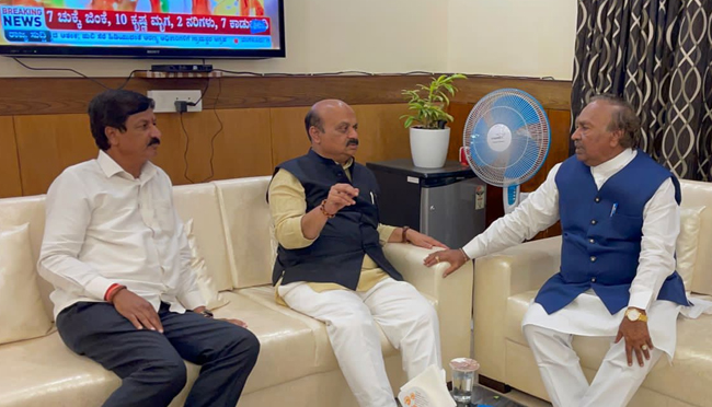 ಬೆಂಗಳೂರು, ಡಿ. 21; ಮಾಜಿ ಸಚಿವರು ಹಾಗೂ ಬಿಜೆಪಿ ಹಿರಿಯ ನಾಯಕರಾದ ಕೆ. ಎಸ್. ಈಶ್ವರಪ್ಪ ಮತ್ತು ರಮೇಶ್ ಜಾರಕಿಹೊಳಿ ಅವರು ಮುಖ್ಯಮಂತ್ರಿ ಬಸವರಾಜ ಬೊಮ್ಮಾಯಿ ಅವರನ್ನು ಭೇಟಿ ಮಾಡಿದ್ದು, ಇಬ್ಬರೂ ಸಹ ಸಚಿವ ಸ್ಥಾನದ ಆಕಾಂಕ್ಷಿಗಳಾಗಿದ್ದಾರೆ.