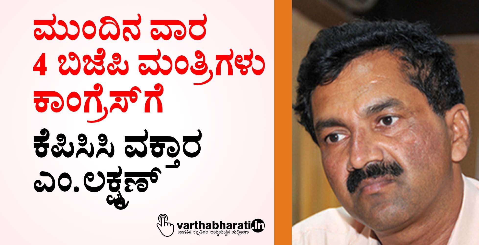 ಮುಂದಿನ ವಾರ 4 ಬಿಜೆಪಿ ಮಂತ್ರಿಗಳು ಕಾಂಗ್ರೆಸ್ ಗೆ: ಕೆಪಿಸಿಸಿ ವಕ್ತಾರ ಎಂ.ಲಕ್ಷ್ಮಣ್