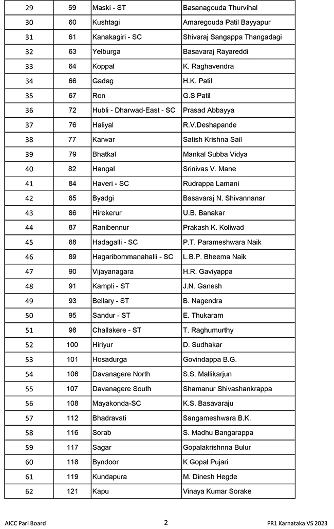 ವಿಧಾನಸಭಾ ಚುನಾವಣೆ: ಕಾಂಗ್ರೆಸ್ ಅಭ್ಯರ್ಥಿಗಳ ಮೊದಲ ಹಂತದ ಪಟ್ಟಿ ಬಿಡುಗಡೆ