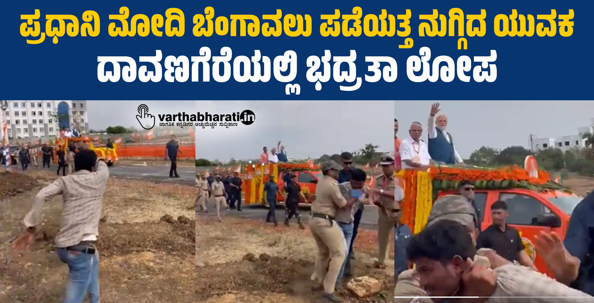 ಪ್ರಧಾನಿ ಮೋದಿ ಬೆಂಗಾವಲು ಪಡೆಯತ್ತ ನುಗ್ಗಿದ ಯುವಕ: ದಾವಣಗೆರೆಯಲ್ಲಿ ಭದ್ರತಾ ಲೋಪ