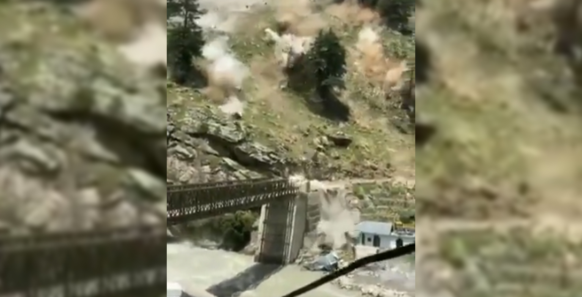 #WATCH | Himachal Pradesh: Boulders roll downhill due to landslide in Kinnaur district resulting in bridge collapse; vehicles damaged pic.twitter.com/AfBvRgSxn0