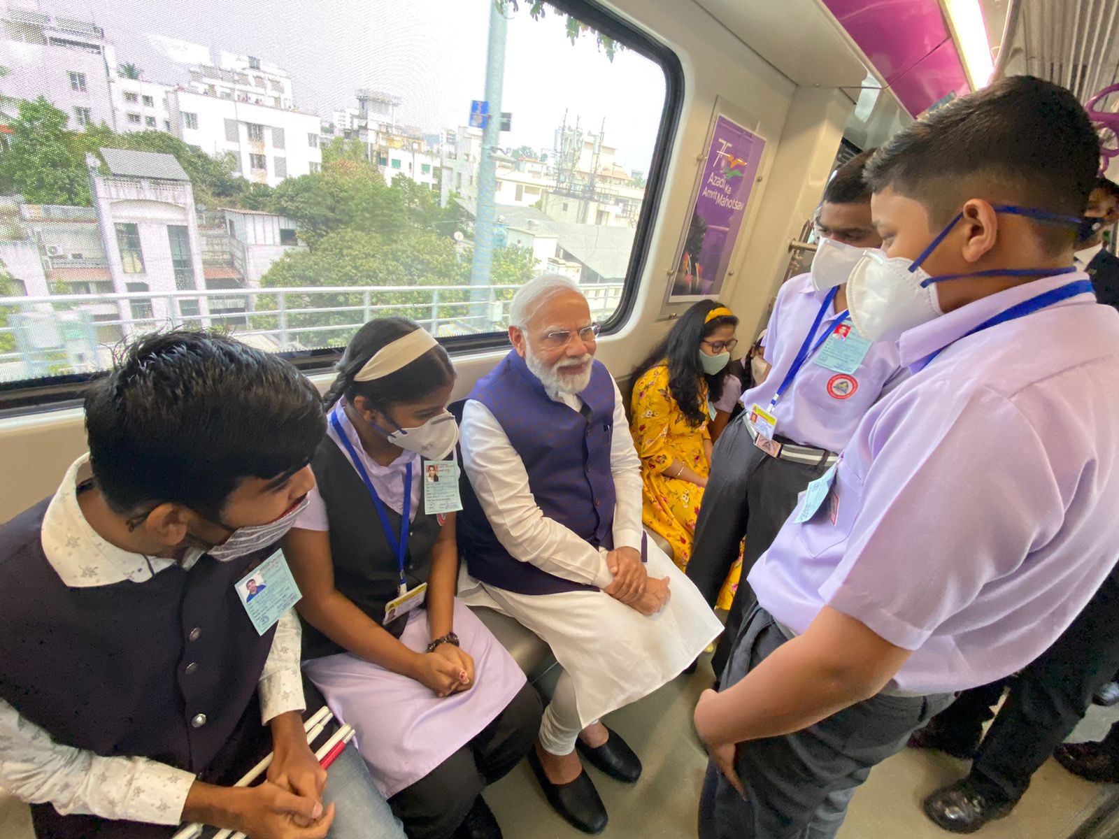 ಪುಣೆ ಮೆಟ್ರೋ ಉದ್ಘಾಟನೆಯಲ್ಲಿ ವಿದ್ಯಾರ್ಥಿಗಳೊಂದಿಗೆ ಮೋದಿ ಫೋಟೊ