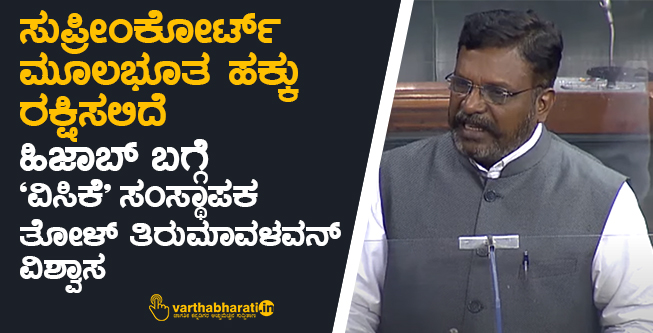 ಸುಪ್ರೀಂಕೋರ್ಟ್ ಮೂಲಭೂತ ಹಕ್ಕು ರಕ್ಷಿಸಲಿದೆ: ಹಿಜಾಬ್ ಬಗ್ಗೆ 'ವಿಸಿಕೆ' ಸಂಸ್ಥಾಪಕ ತೋಳ್ ತಿರುಮಾವಳವನ್ ವಿಶ್ವಾಸ