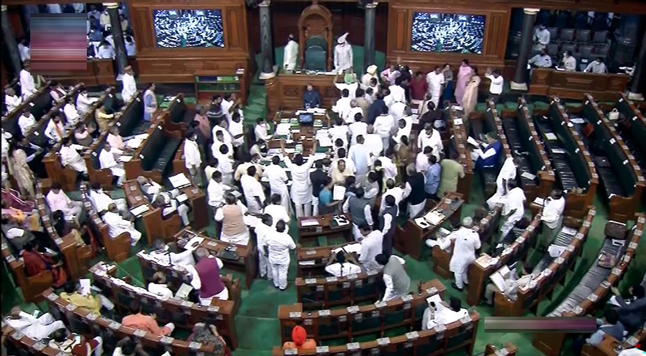 ಸದನದ ಬಾವಿಗೆ ನುಗ್ಗಿದ ಪ್ರತಿಪಕ್ಷ ಸದಸ್ಯರ ತೀವ್ರ ಗದ್ದಲ, ಪ್ರತಿಭಟನೆಯ ಬಳಿಕ ಕೆಳಮನೆಯನ್ನು ಮುಂದೂಡಲಾಯಿತು. ಘೋಷಣೆಗಳ ನಡುವೆಯೇ ಪ್ರಶ್ನೆವೇಳೆಯನ್ನು ನಡೆಸಲು ಸ್ಪೀಕರ್ ಓಂ ಬಿರ್ಲಾ ಪ್ರಯತ್ನಿಸಿದರಾದರೂ ಯಶ ಕಾಣದೆ ಸದನವನ್ನು ಅರ್ಧ ಗಂಟೆ ಕಾಲ ಮುಂದೂಡಿದರು.