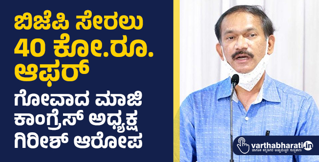 ಬಿಜೆಪಿ ಸೇರಲು 40 ಕೋ.ರೂ. ಆಫರ್: ಗೋವಾದ ಮಾಜಿ ಕಾಂಗ್ರೆಸ್ ಅಧ್ಯಕ್ಷ ಗಿರೀಶ್ ಆರೋಪ