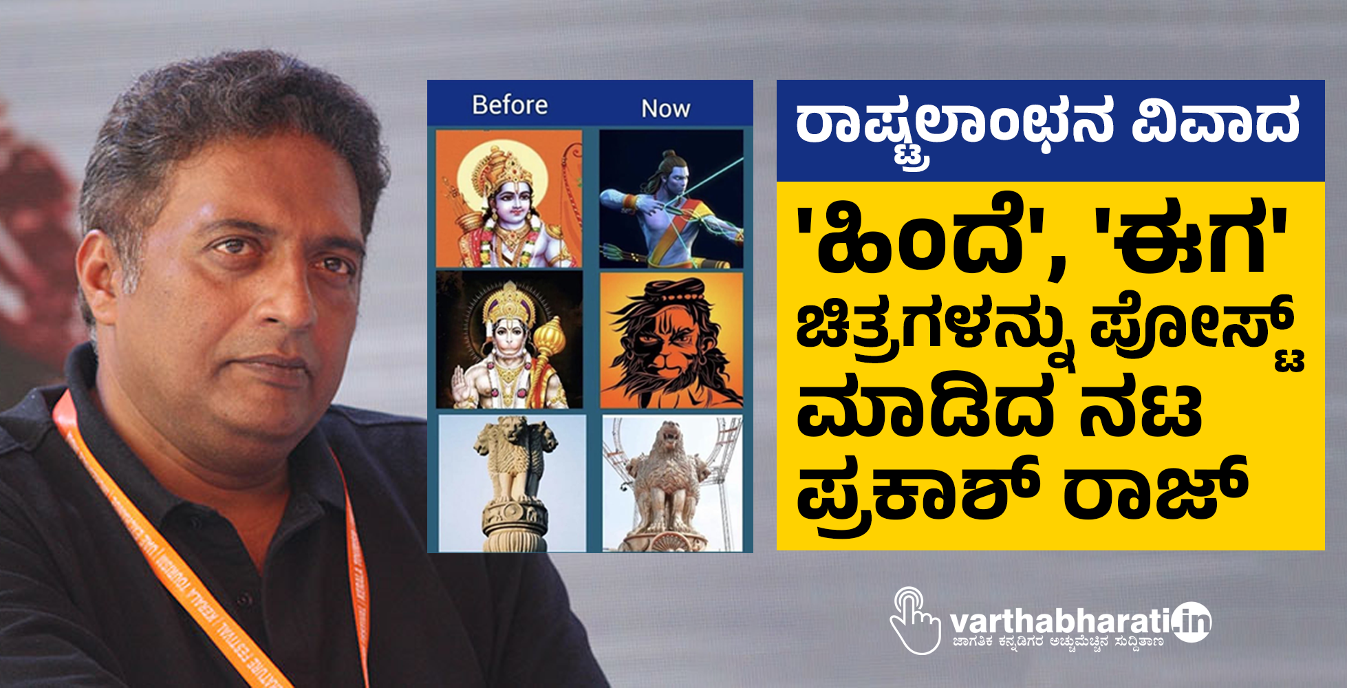 ರಾಷ್ಟ್ರಲಾಂಛನ ವಿವಾದ: 'ಹಿಂದೆ', 'ಈಗ' ಚಿತ್ರಗಳನ್ನು ಪೋಸ್ಟ್ ಮಾಡಿದ ನಟ ಪ್ರಕಾಶ್ ರಾಜ್