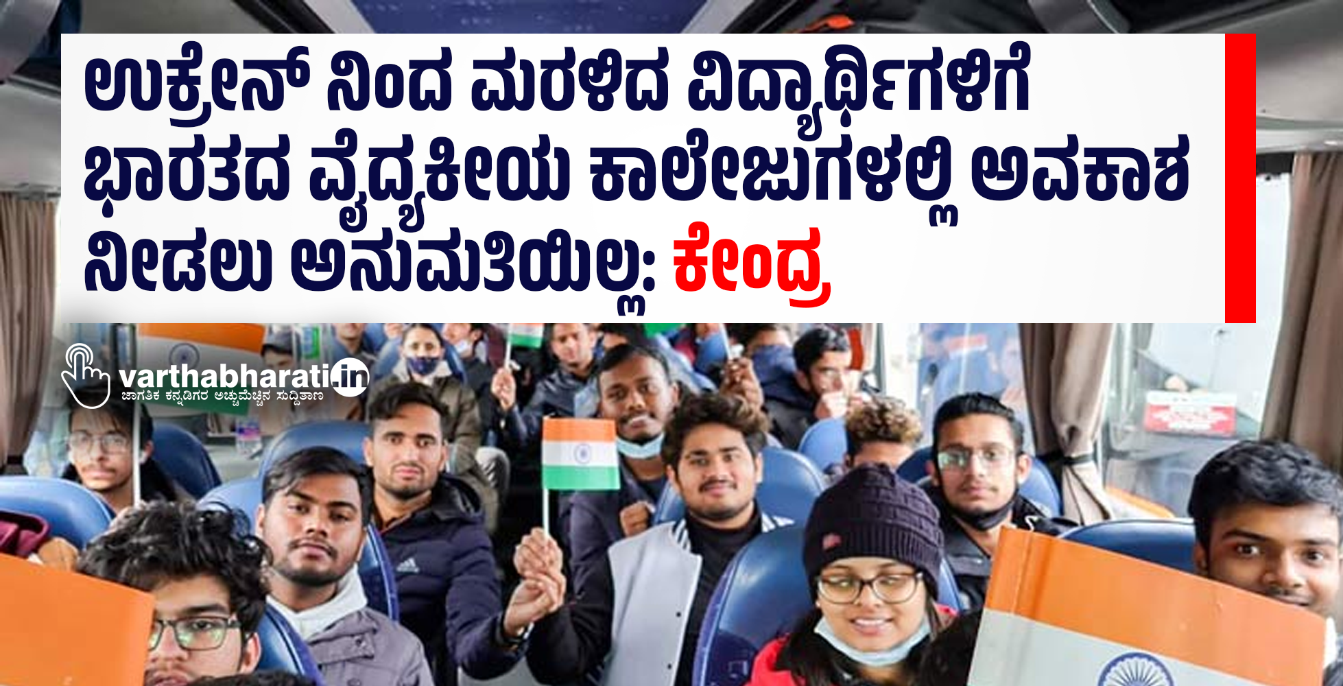 ಉಕ್ರೇನ್ ನಿಂದ ಮರಳಿದ ವಿದ್ಯಾರ್ಥಿಗಳಿಗೆ ಭಾರತದ ವೈದ್ಯಕೀಯ ಕಾಲೇಜುಗಳಲ್ಲಿ ಅವಕಾಶ ನೀಡಲು ಅನುಮತಿಯಿಲ್ಲ: ಕೇಂದ್ರ