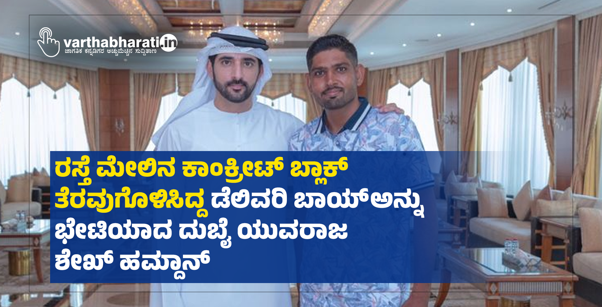 ರಸ್ತೆ ಮೇಲಿನ ಕಾಂಕ್ರೀಟ್ ಬ್ಲಾಕ್ ತೆರವುಗೊಳಿಸಿದ್ದ ಡೆಲಿವರಿ ಬಾಯ್ ಅನ್ನು ಭೇಟಿಯಾದ ದುಬೈ ಯುವರಾಜ ಶೇಖ್ ಹಮ್ದಾನ್
