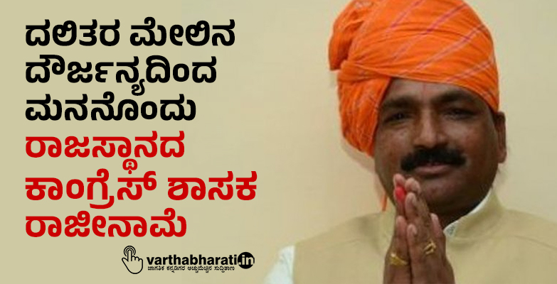 ದಲಿತರ ಮೇಲಿನ ದೌರ್ಜನ್ಯದಿಂದ ಮನನೊಂದು  ರಾಜಸ್ಥಾನದ ಕಾಂಗ್ರೆಸ್ ಶಾಸಕ ರಾಜೀನಾಮೆ