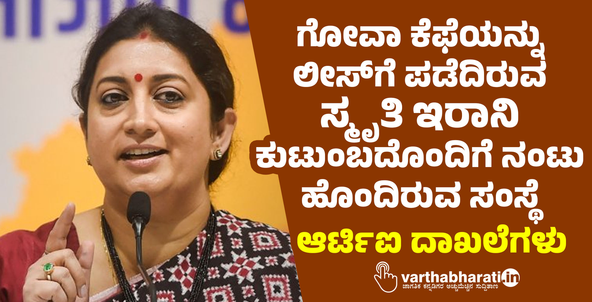 ಗೋವಾ ಕೆಫೆಯನ್ನು ಲೀಸ್ಗೆ ಪಡೆದಿರುವ ಸ್ಮೃತಿ ಇರಾನಿ ಕುಟುಂಬದೊಂದಿಗೆ ನಂಟು ಹೊಂದಿರುವ ಸಂಸ್ಥೆ: ಆರ್ಟಿಐ ದಾಖಲೆಗಳು