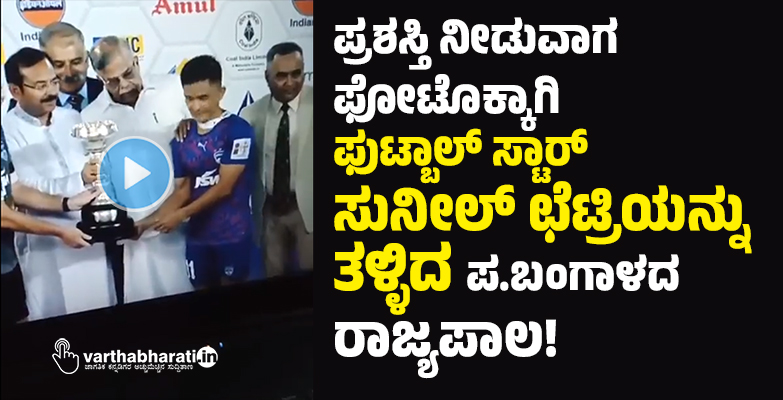 ಪ್ರಶಸ್ತಿ ನೀಡುವಾಗ ಫೋಟೊಕ್ಕಾಗಿ ಫುಟ್ಬಾಲ್ ಸ್ಟಾರ್ ಸುನೀಲ್ ಛೆಟ್ರಿಯನ್ನು ತಳ್ಳಿದ ಪ.ಬಂಗಾಳದ ರಾಜ್ಯಪಾಲ!