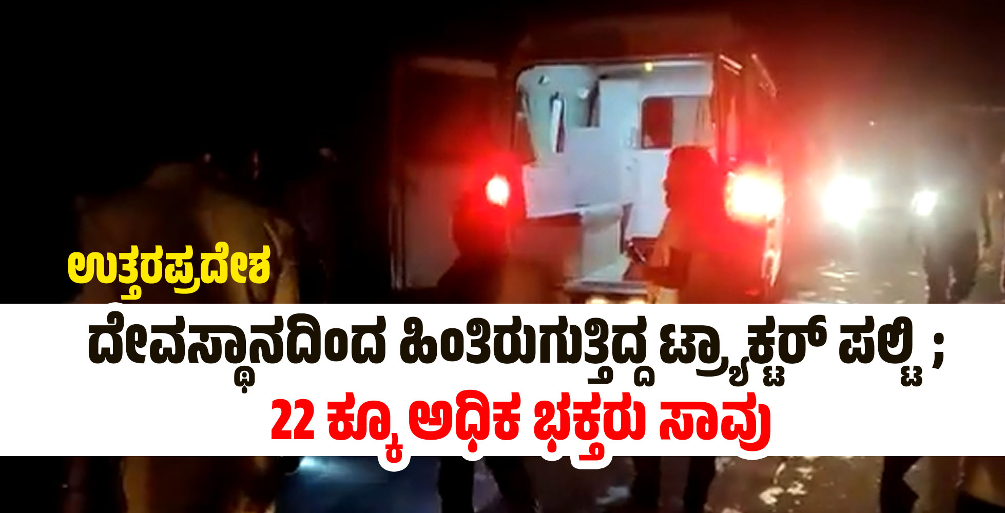 ಉತ್ತರಪ್ರದೇಶ: ದೇವಸ್ಥಾನದಿಂದ ಹಿಂತಿರುಗುತ್ತಿದ್ದ ಟ್ರ್ಯಾಕ್ಟರ್ ಪಲ್ಟಿ; 22 ಕ್ಕೂ ಅಧಿಕ ಭಕ್ತರು ಸಾವು