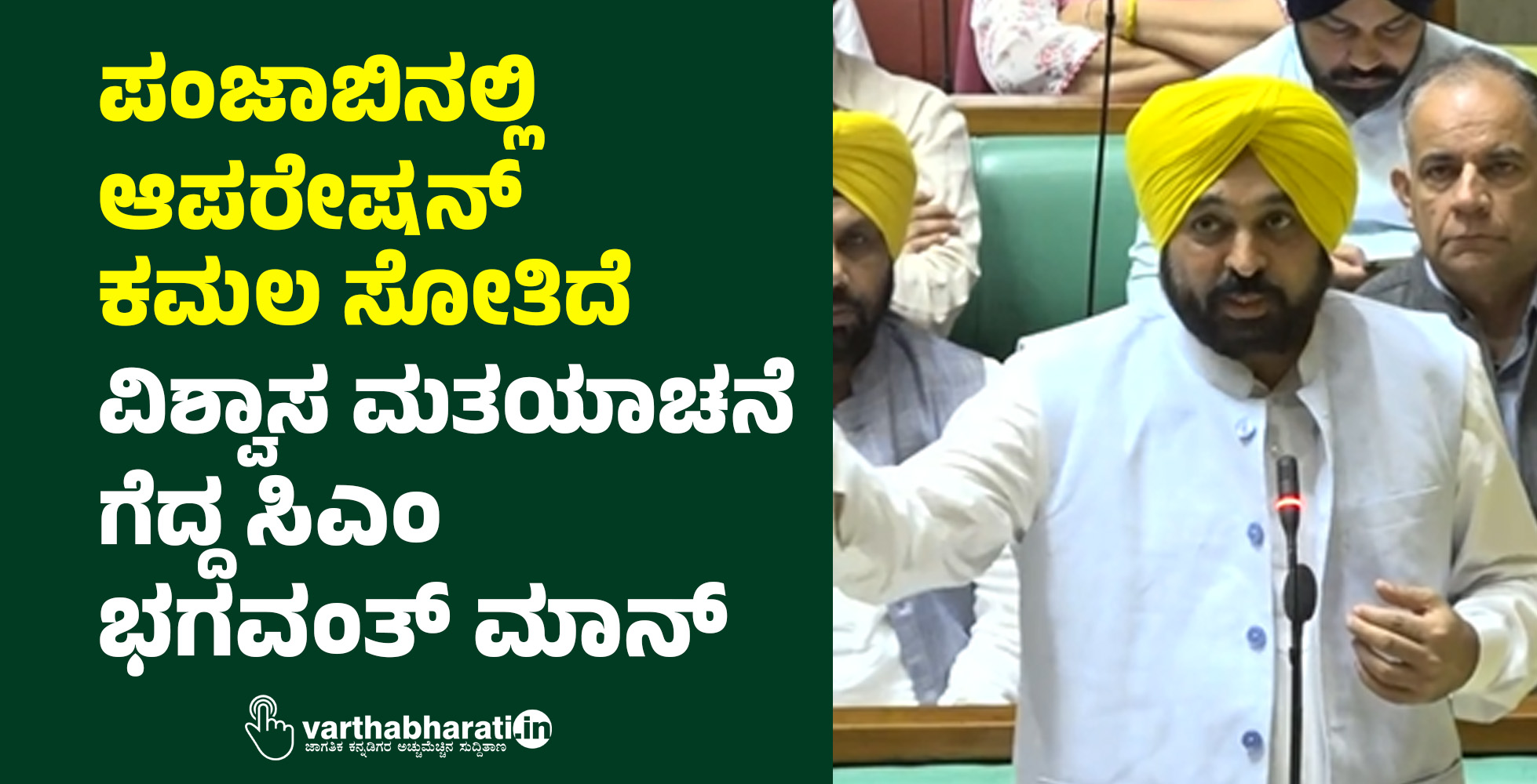117 ಸದಸ್ಯರ ಪಂಜಾಬ್ ವಿಧಾನ ಸಭೆಯಲ್ಲಿ ಆಪ್ನ 92 (ಸ್ಪೀಕರ್ ಸೇರಿದಂತೆ), ಕಾಂಗ್ರೆಸ್ನ 18, ಎಸ್ಎಡಿಯ 3, ಬಿಜೆಪಿಯ 2, ಬಿಎಸ್ಪಿಯ 1 ಹಾಗೂ ಪಕ್ಷೇತರ 1 ಶಾಸಕರು ಇದ್ದಾರೆ. ಪಂಜಾಬ್ ವಿಧಾನ ಸಭೆಯಲ್ಲಿ ಆಮ್ ಆದ್ಮಿ ಪಕ್ಷದ ಸರಕಾರ ವಿಶ್ವಾಸ ಮತ ಗೆದ್ದ ಬಳಿಕ ಮುಖ್ಯಮಂತ್ರಿ ಭಗವಂತ ಮಾನ್, ‘‘ಪಂಜಾಬ್ನಲ್ಲಿ ಆಪರೇಶನ್ ಕಮಲ ವಿಫಲವಾಯಿತು’’ ಎಂದು ಹೇಳಿದ್ದಾರೆ.