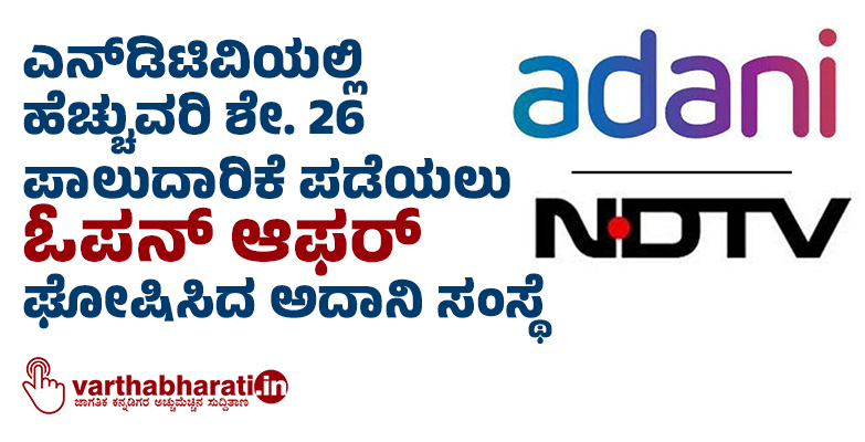 ಎನ್ಡಿಟಿವಿಯಲ್ಲಿ ಹೆಚ್ಚುವರಿ ಶೇ. 26 ಪಾಲುದಾರಿಕೆ ಪಡೆಯಲು ‘ಓಪನ್ ಆಫರ್’ ಘೋಷಿಸಿದ ಅದಾನಿ ಸಂಸ್ಥೆ