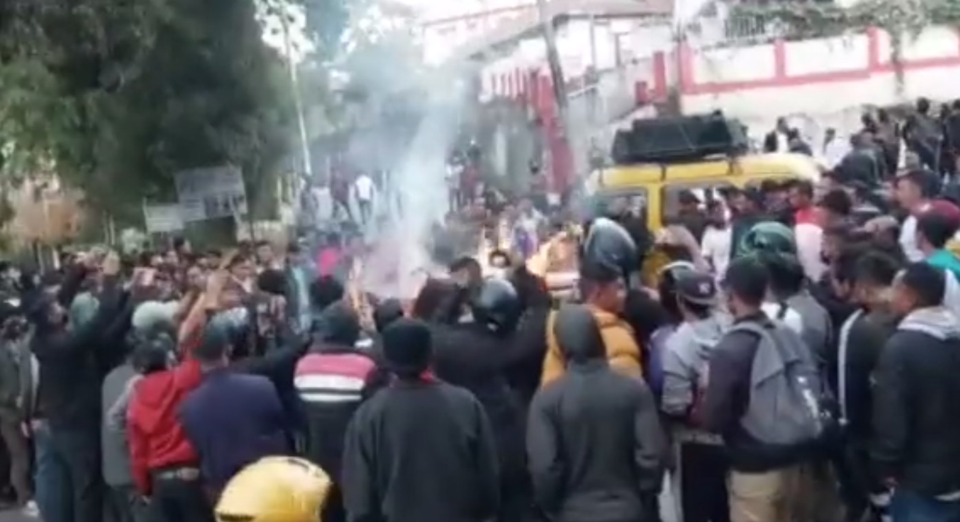 #ShillongViolence: Effigies of #AmitShah #ConradSangma #HimantaBiswaSarma burnt outside Meghalaya CM's residence in Shillong today...