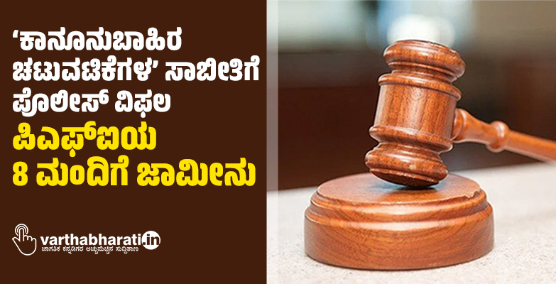 ‘ಕಾನೂನುಬಾಹಿರ ಚಟುವಟಿಕೆಗಳ’ ಸಾಬೀತಿಗೆ ಪೊಲೀಸ್ ವಿಫಲ :ಪಿಎಫ್ಐಯ 8 ಮಂದಿಗೆ ಜಾಮೀನು