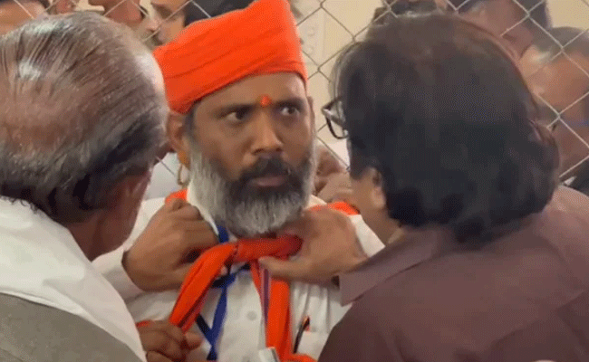 ಇವಿಎಂ ದುರ್ಬಳಕೆಯಾಗಿದೆ ಎಂದು ಆರೋಪಿಸಿ ಕುತ್ತಿಗೆಗೆ ವಸ್ತ್ರ ಬಿಗಿದುಕೊಂಡು ಪ್ರತಿಭಟಿಸಿದ ಕಾಂಗ್ರೆಸ್ ಅಭ್ಯರ್ಥಿ