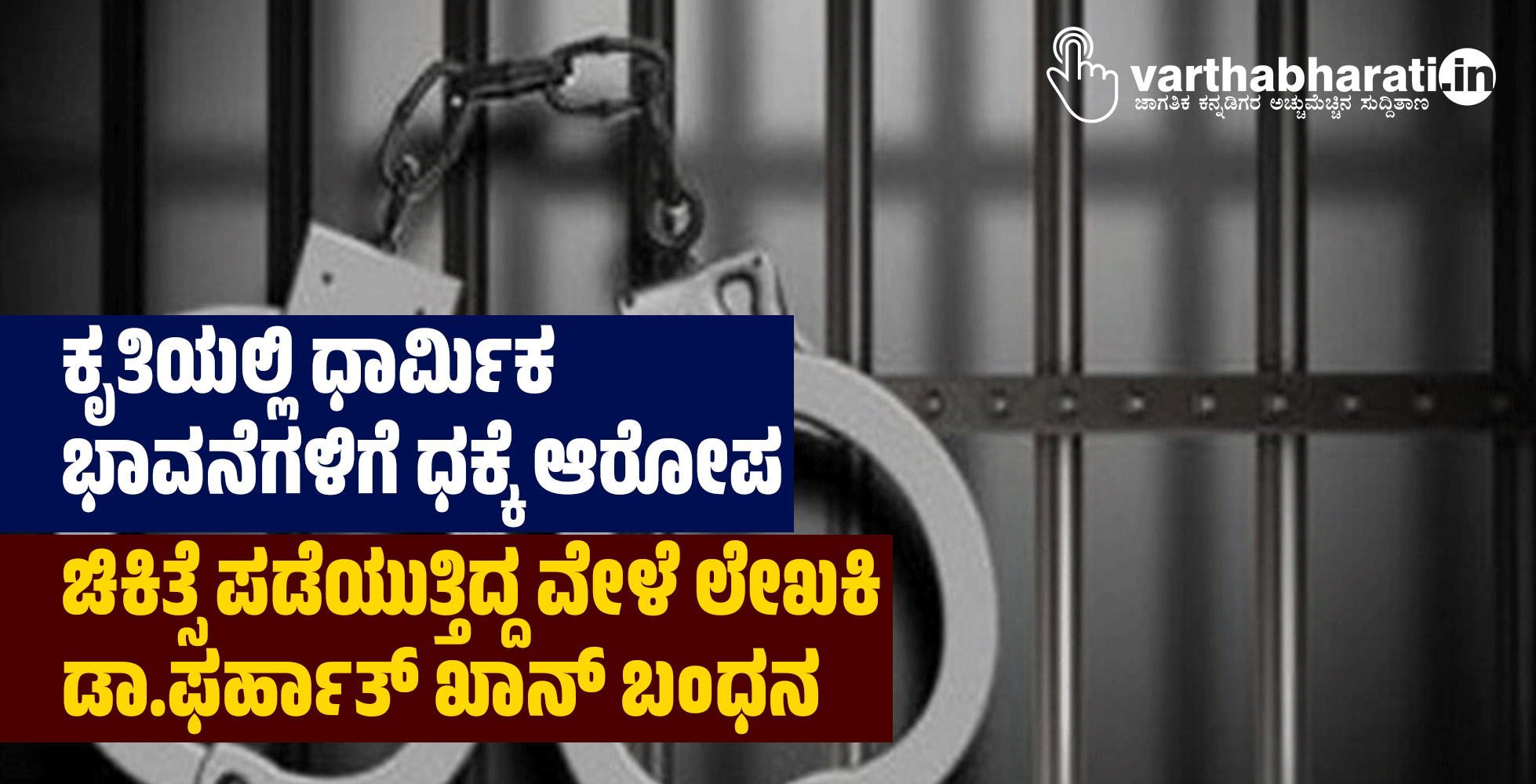 ಕೃತಿಯಲ್ಲಿ ಧಾರ್ಮಿಕ ಭಾವನೆಗಳಿಗೆ ಧಕ್ಕೆ ಆರೋಪ: ಚಿಕಿತ್ಸೆ ಪಡೆಯುತ್ತಿದ್ದ ವೇಳೆ ಲೇಖಕಿ ಡಾ.ಫರ್ಹಾತ್ ಖಾನ್ ಬಂಧನ