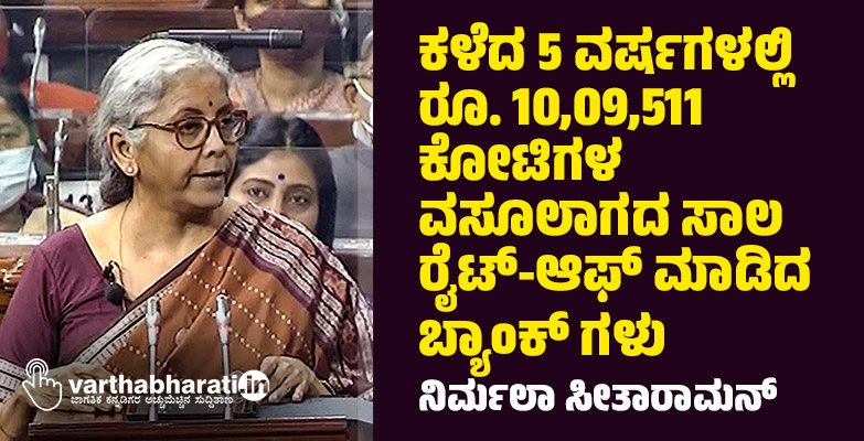 ಕಳೆದ 5 ವರ್ಷಗಳಲ್ಲಿ ರೂ. 10,09,511 ಕೋಟಿಗಳ ವಸೂಲಾಗದ ಸಾಲ ರೈಟ್-ಆಫ್ ಮಾಡಿದ ಬ್ಯಾಂಕ್ ಗಳು: ವಿತ್ತ ಸಚಿವೆ
