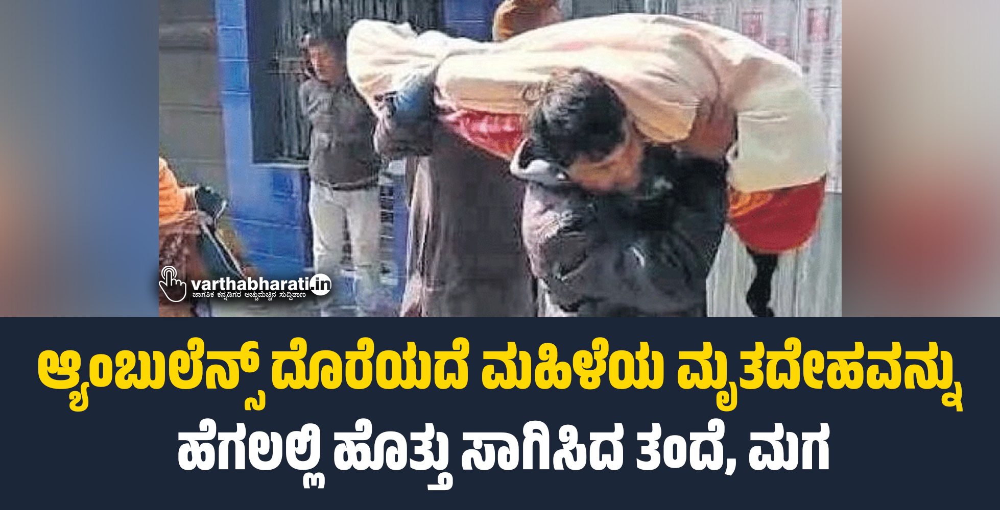 ಆ್ಯಂಬುಲೆನ್ಸ್ ದೊರೆಯದೆ ಮಹಿಳೆಯ ಮೃತದೇಹವನ್ನು ಹೆಗಲಲ್ಲಿ ಹೊತ್ತು ಸಾಗಿಸಿದ ತಂದೆ, ಮಗ
