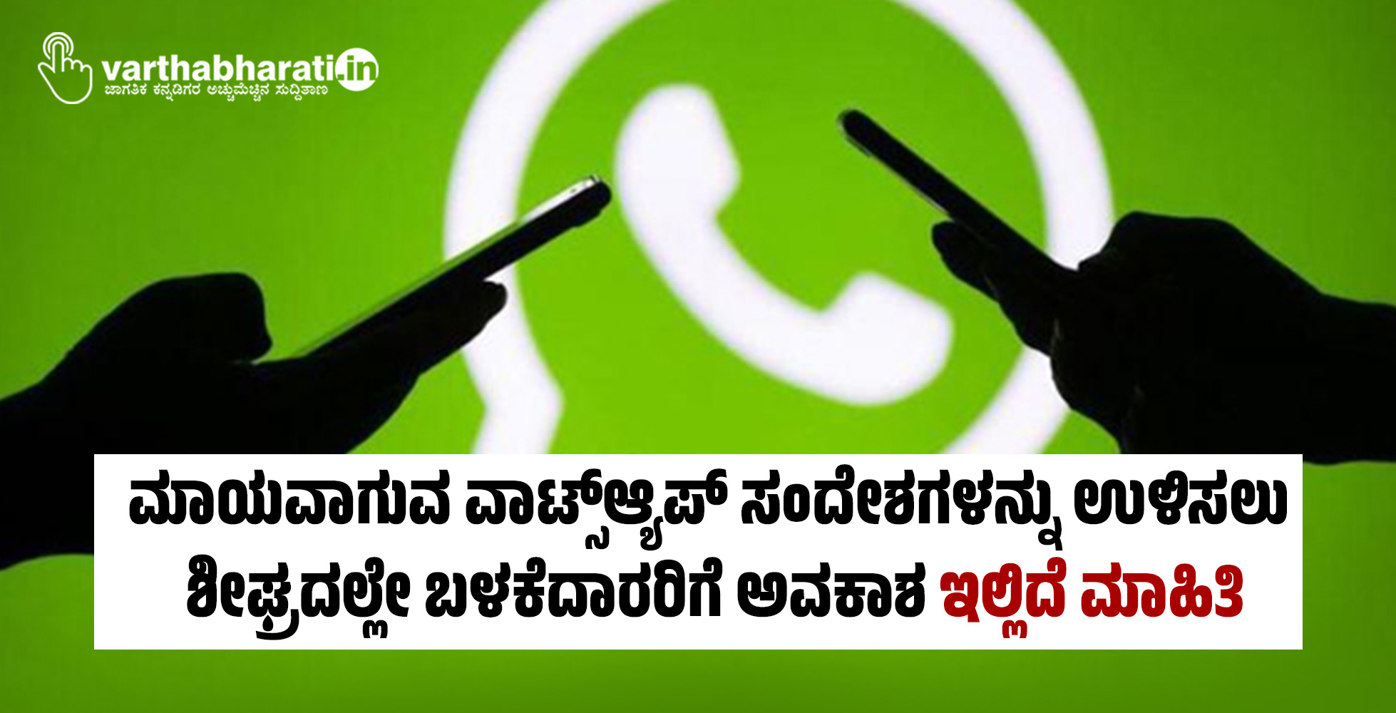 ಮಾಯವಾಗುವ ವಾಟ್ಸ್ಆ್ಯಪ್ ಸಂದೇಶಗಳನ್ನು ಉಳಿಸಲು ಶೀಘ್ರದಲ್ಲೇ ಬಳಕೆದಾರರಿಗೆ ಅವಕಾಶ: ಇಲ್ಲಿದೆ ಮಾಹಿತಿ