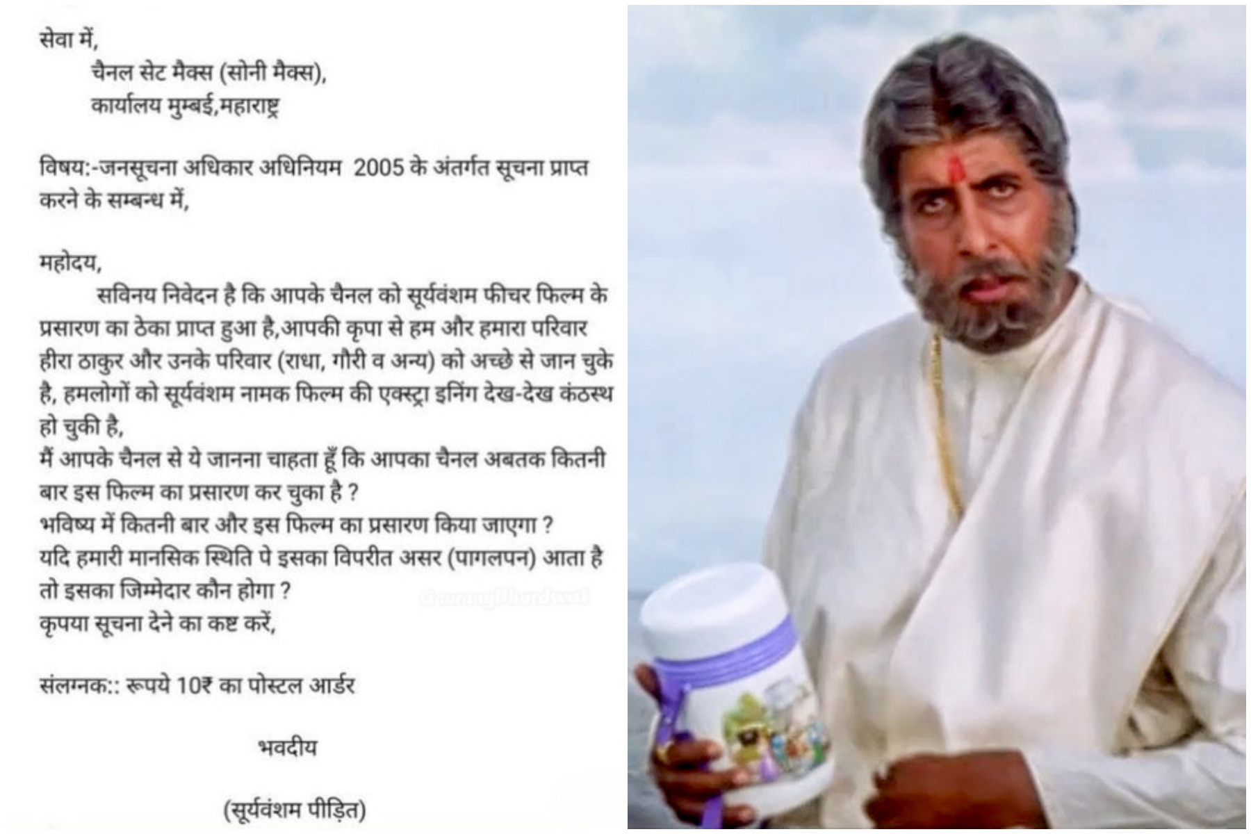 ಸೂರ್ಯವಂಶಂ ಚಿತ್ರವನ್ನು ಎಷ್ಟು ಬಾರಿ ಪ್ರಸಾರ ಮಾಡುತ್ತೀರ? ಸೋನಿ ಮ್ಯಾಕ್ಸ್ಗೆ ಪತ್ರ ಬರೆದ ಗ್ರಾಹಕ