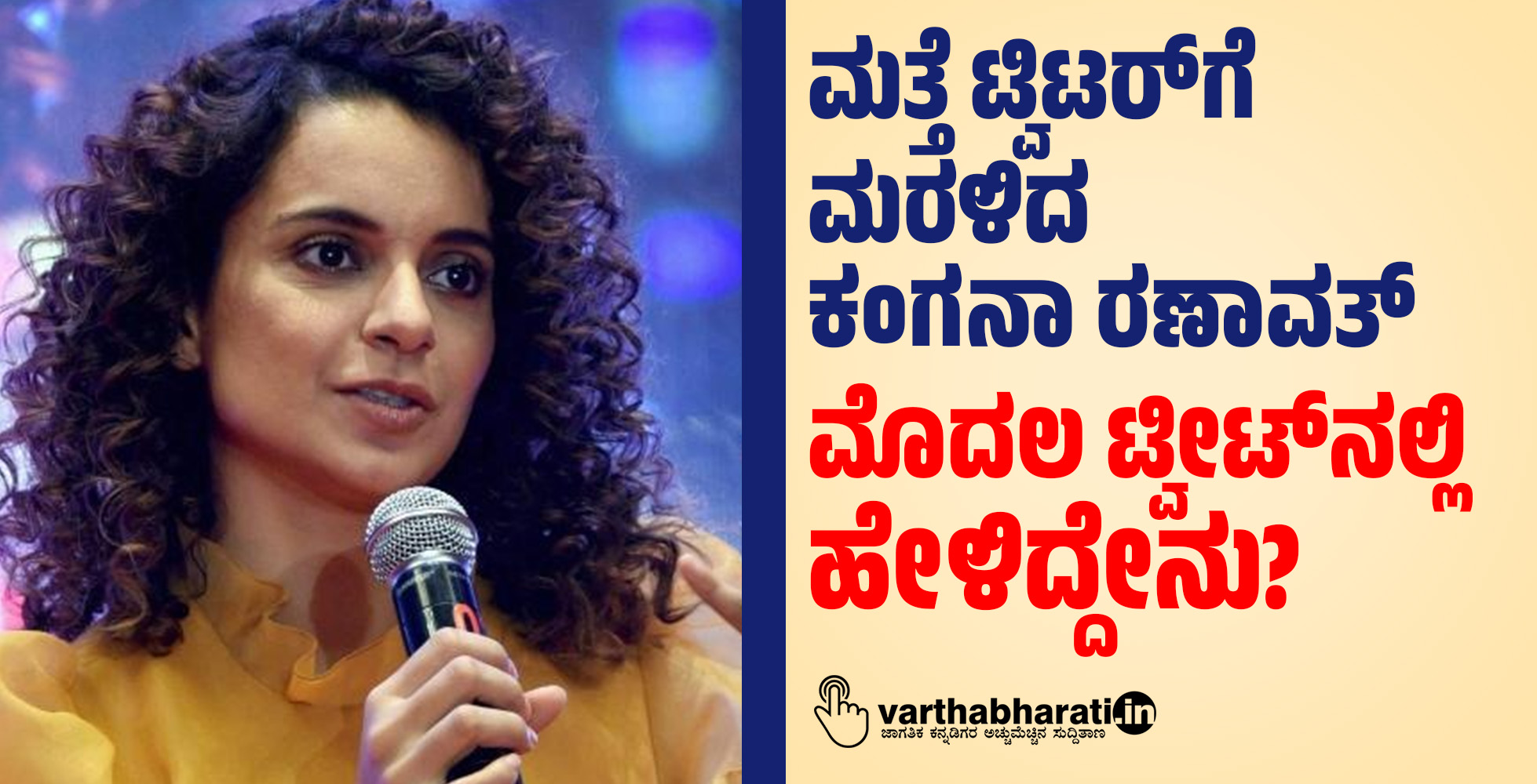 ಮತ್ತೆ ಟ್ವಿಟರ್ಗೆ ಮರಳಿದ ಕಂಗನಾ ರಣಾವತ್ ಮೊದಲ ಟ್ವೀಟ್ ನಲ್ಲಿ ಹೇಳಿದ್ದೇನು?