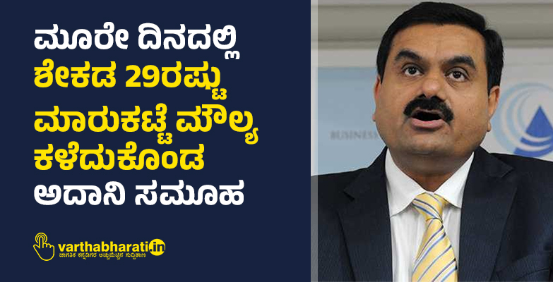 ಮೂರೇ ದಿನದಲ್ಲಿ ಶೇಕಡ 29ರಷ್ಟು ಮಾರುಕಟ್ಟೆ ಮೌಲ್ಯ ಕಳೆದುಕೊಂಡ ಅದಾನಿ ಸಮೂಹ