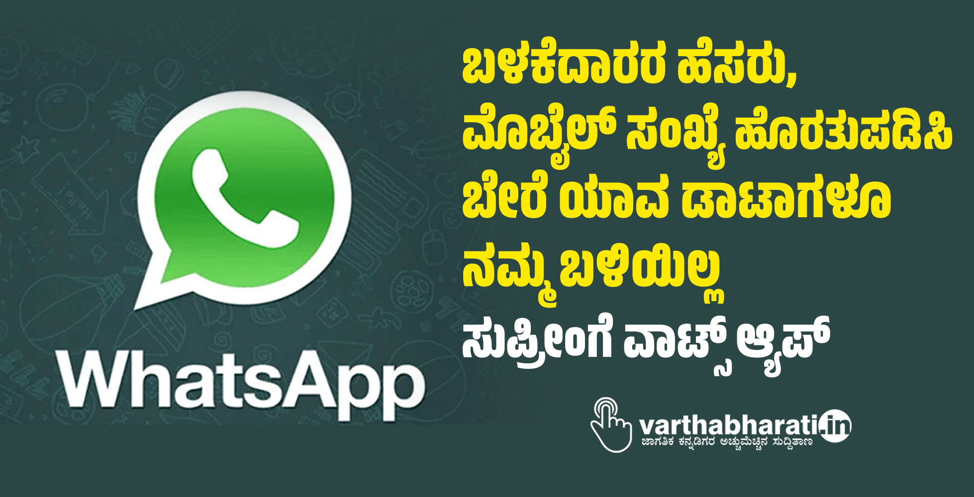 ಬಳಕೆದಾರರ ಹೆಸರು, ಮೊಬೈಲ್ ಸಂಖ್ಯೆ ಹೊರತುಪಡಿಸಿ ಬೇರೆ ಯಾವ ಡಾಟಾಗಳೂ ನಮ್ಮ ಬಳಿಯಿಲ್ಲ: ಸುಪ್ರೀಂಗೆ ವಾಟ್ಸ್ ಆ್ಯಪ್