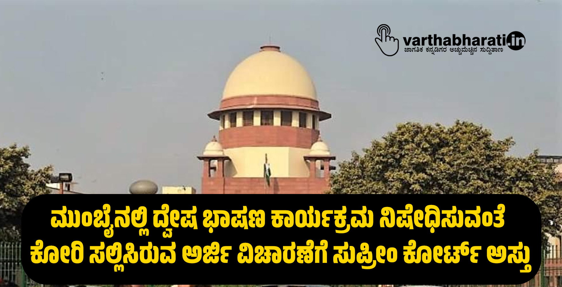 ಮುಂಬೈನಲ್ಲಿ ದ್ವೇಷ ಭಾಷಣ ಕಾರ್ಯಕ್ರಮ ನಿಷೇಧಿಸುವಂತೆ ಕೋರಿ ಸಲ್ಲಿಸಿರುವ ಅರ್ಜಿ ವಿಚಾರಣೆಗೆ ಸುಪ್ರೀಂ ಕೋರ್ಟ್ ಅಸ್ತು