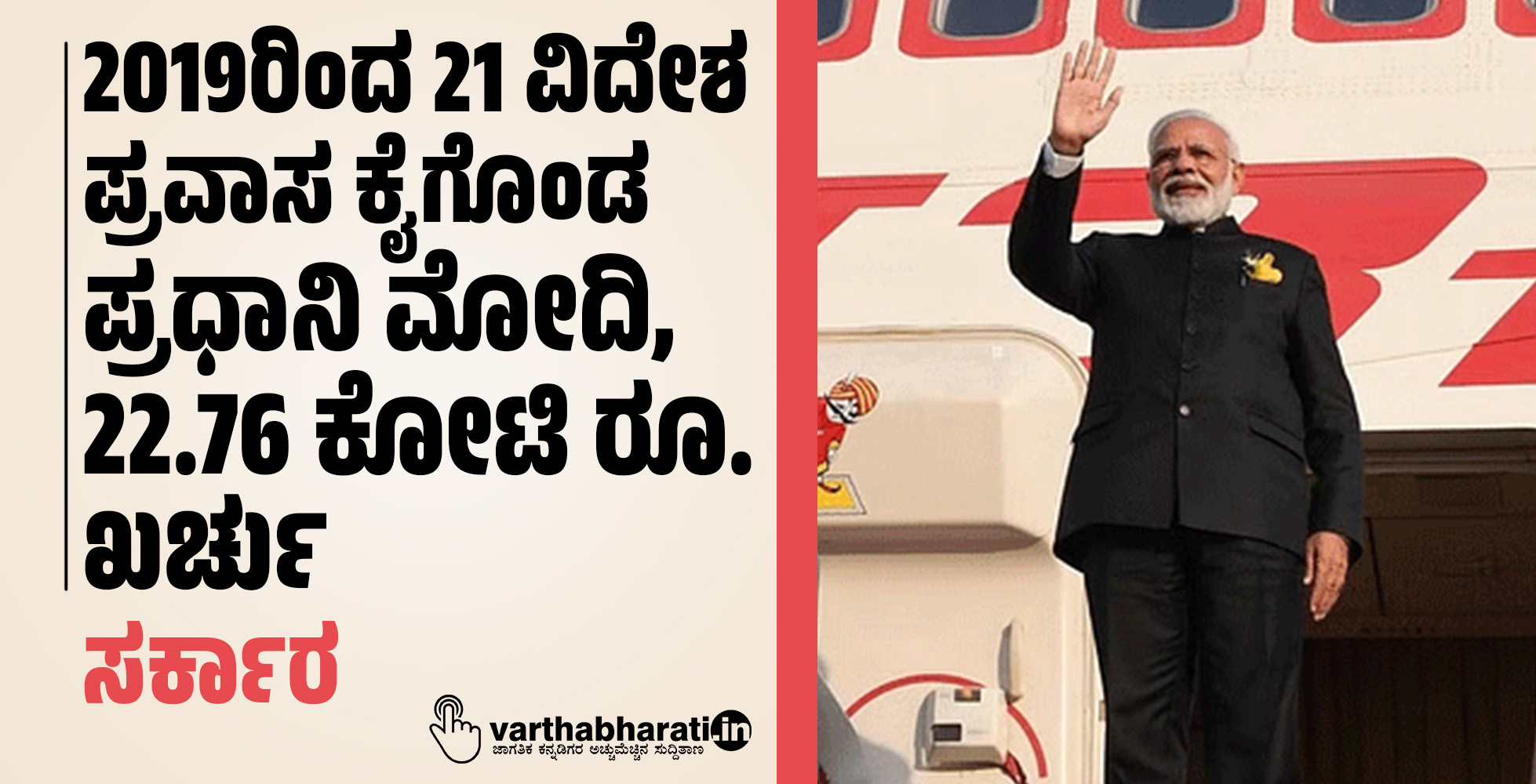 ಹೊಸದಿಲ್ಲಿ: ಪ್ರಧಾನಿ ನರೇಂದ್ರ ಮೋದಿ ಅವರು 2019 ರಿಂದ 21 ವಿದೇಶ ಪ್ರವಾಸಗಳನ್ನು ಕೈಗೊಂಡಿದ್ದಾರೆ ಮತ್ತು ಈ ಭೇಟಿಗಳಿಗಾಗಿ 22.76 ಕೋಟಿ ರೂಪಾಯಿಗಳನ್ನು ಖರ್ಚು ಮಾಡಲಾಗಿದೆ ಎಂದು ಕೇಂದ್ರ ಸರ್ಕಾರ ಗುರುವಾರ ತಿಳಿಸಿದೆ.