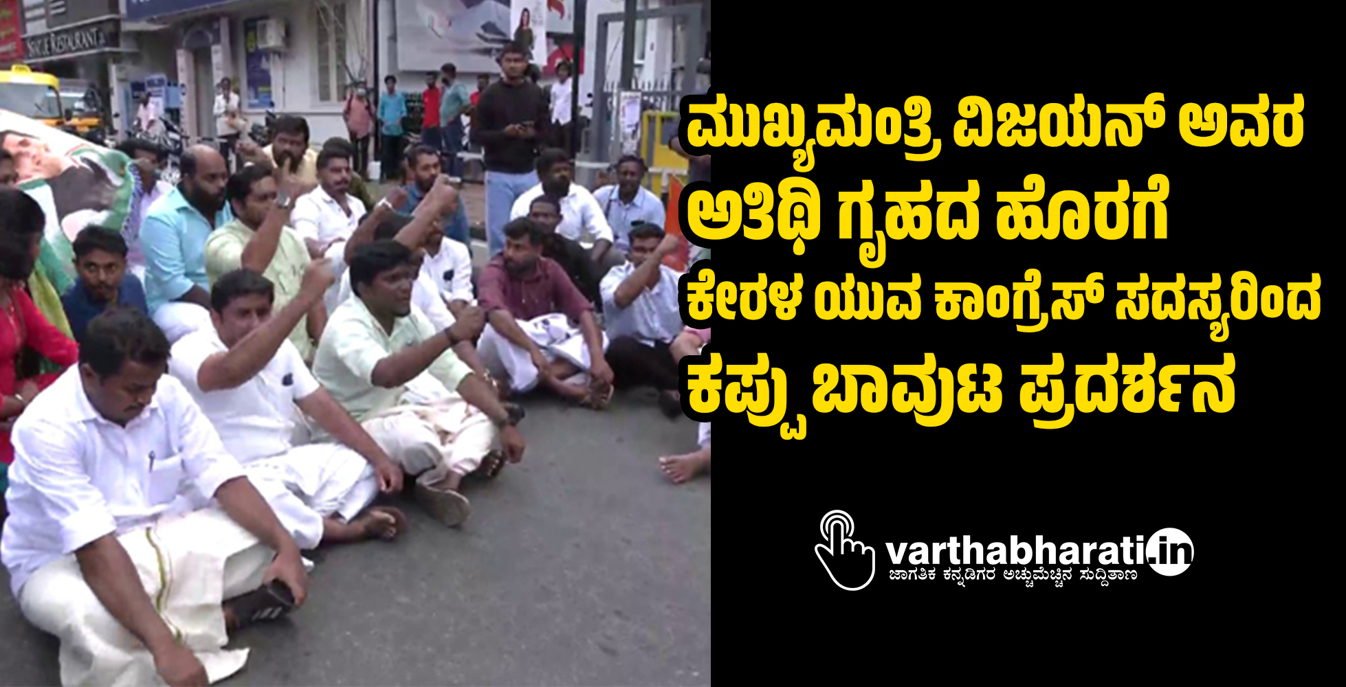 ಮುಖ್ಯಮಂತ್ರಿ ವಿಜಯನ್ ಅವರ ಅತಿಥಿ ಗೃಹದ ಹೊರಗೆ ಕೇರಳ ಯುವ ಕಾಂಗ್ರೆಸ್ ಸದಸ್ಯರಿಂದ ಕಪ್ಪು ಬಾವುಟ ಪ್ರದರ್ಶನ