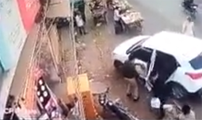 Shocking visuals of shootout in UP's Prayagraj. Umesh Pal, main witness in murder of BSP MLA Raju Pal, was killed and two armed police men in his security were injured (one critical). An assailant can be seen hurling crude bomb at the SUV while others opened indiscriminate fire. pic.twitter.com/dQ7nEb8q4s