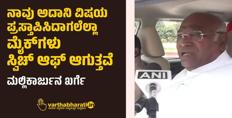 ನಾವು ಅದಾನಿ ವಿಷಯ ಪ್ರಸ್ತಾಪಿಸಿದಾಗಲೆಲ್ಲಾ ಮೈಕ್ಗಳು ಸ್ವಿಚ್ ಆಫ್ ಆಗುತ್ತವೆ: ಮಲ್ಲಿಕಾರ್ಜುನ ಖರ್ಗೆ