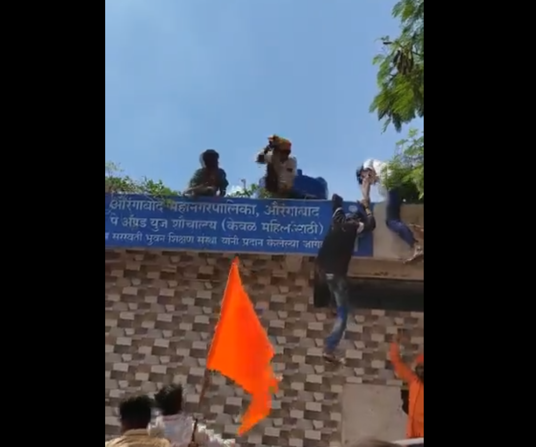 ಔರಂಗಾಬಾದ್ ಎಂದು ನಾಮಫಲಕದಲ್ಲಿದುದಕ್ಕೆ ಮಹಿಳಾ ಶೌಚಾಲಯದ ಮೇಲೆ ಹತ್ತಿ ದಾಂಧಲೆಗೈದ ಹಿಂದುತ್ವ ಕಾರ್ಯಕರ್ತರು
