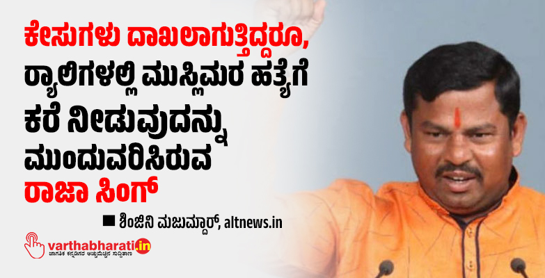 ಕೇಸುಗಳು ದಾಖಲಾಗುತ್ತಿದ್ದರೂ, ರ್ಯಾಲಿಗಳಲ್ಲಿ ಮುಸ್ಲಿಮರ ಹತ್ಯೆಗೆ ಕರೆ ನೀಡುವುದನ್ನು ಮುಂದುವರಿಸಿರುವ ರಾಜಾ ಸಿಂಗ್