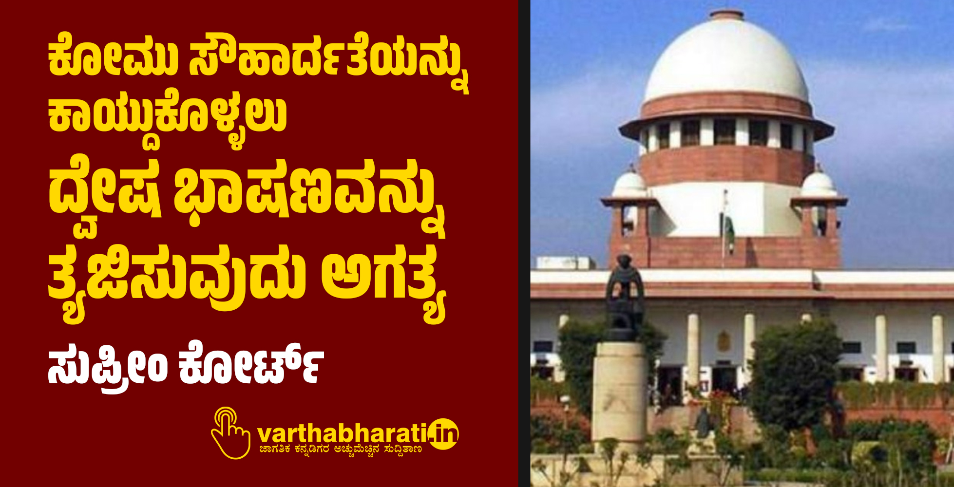 ಕೋಮು ಸೌಹಾರ್ದತೆಯನ್ನು ಕಾಯ್ದುಕೊಳ್ಳಲು ದ್ವೇಷ ಭಾಷಣವನ್ನು ತ್ಯಜಿಸುವುದು ಅಗತ್ಯ: ಸುಪ್ರೀಂ ಕೋರ್ಟ್
