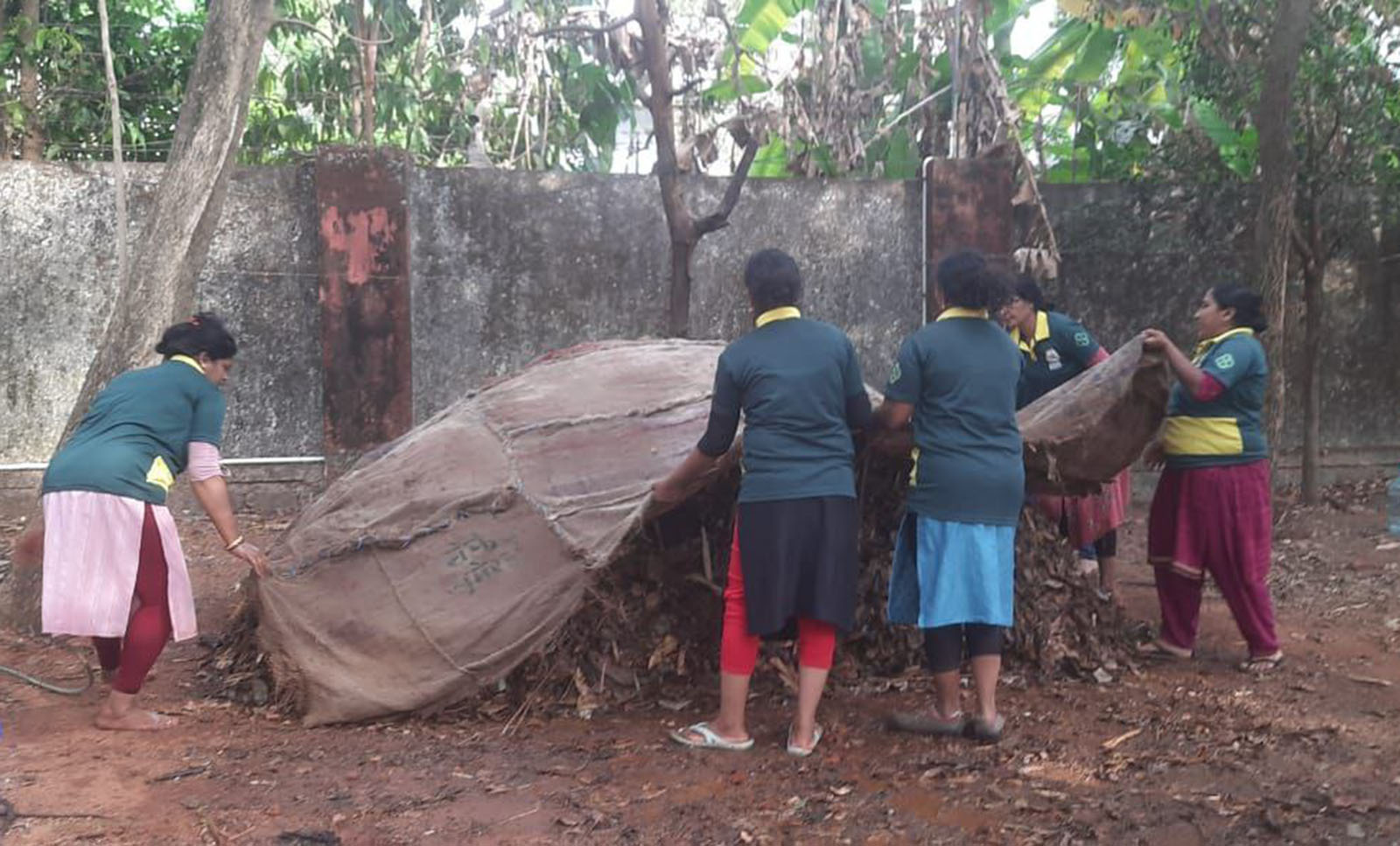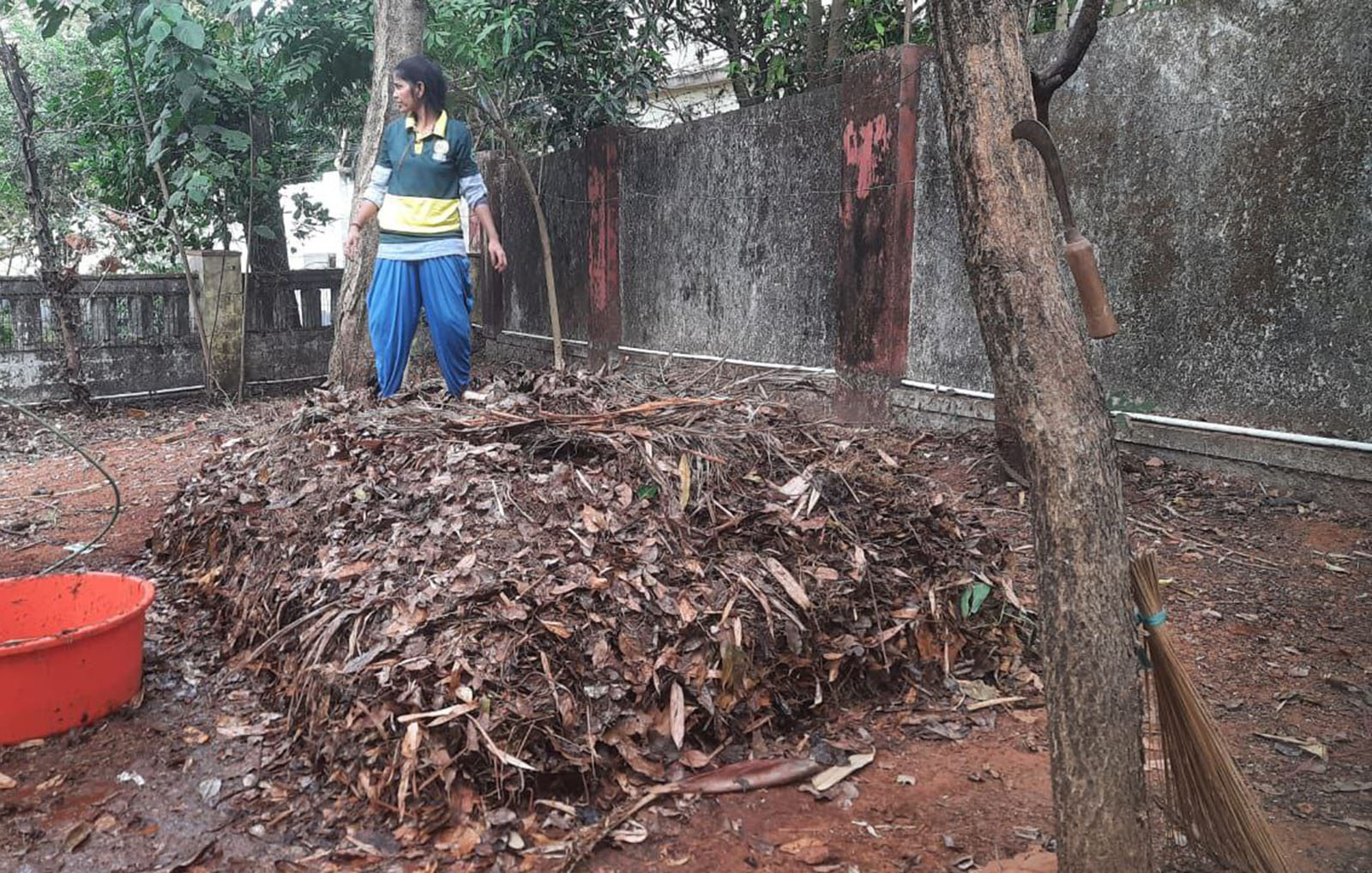 ಕಾಂಪೌಂಡ್ನಲ್ಲಿ ಸಂಗ್ರಹಿಸಲಾದ ಎಲೆ ಮತ್ತು ಹುಲ್ಲನ್ನು ಸೆಗಣಿಯೊಂದಿಗೆ ಮಿಶ್ರಣ ಮಾಡಿ, 10x6 ಅಳತೆಯ ಬೆಡ್ ಮಾದರಿಯಲ್ಲಿ ಜೋಡಿಸ ಲಾಗಿದ್ದು, ಗೋಣಿಚೀಲದ ಹೊದಿಕೆ ಹಾಕಲಾಗಿದೆ. ಪ್ರತಿದಿನ ಈ ಬೆಡ್ ಮೇಲೆ ನೀರಿನ ಸಿಂಪಡಣೆ ಮಾಡಬೇಕಿದ್ದು, ಇದು 45 ದಿನಗಳ ಬಳಿಕ ಅತ್ಯುತ್ತಮ ಸಾವಯವ ಗೊಬ್ಬರವಾಗಿ ಪರಿವರ್ತನೆಗೊಳ್ಳುತ್ತದೆ. ಇದನ್ನು ಕೈ ತೋಟದಲ್ಲಿನ ಗಿಡಗಳಿಗೆ ಬಳಸಬಹುದು ಅಥವಾ ಅದೇ ಗೊಬ್ಬರದ ಬೆಡ್ ನಲ್ಲಿ ಬೀಜಗಳನ್ನು ನೆಡುವ ಮೂಲಕ ಗಿಡಗಳನ್ನು ಬೆಳಸಲು ಸಾದ್ಯವಾಗಲಿದೆ. ಎಲ್ಲದಕ್ಕೂ ಮುಖ್ಯವಾಗಿ ಮನೆಯ ಆವರಣವು ಕಸದಿಂದ ಮುಕ್ತವಾಗಿ ಸ್ವಚ್ಛತೆಯಿಂದ ಕಂಗೊಳಿಸುತ್ತದೆ.