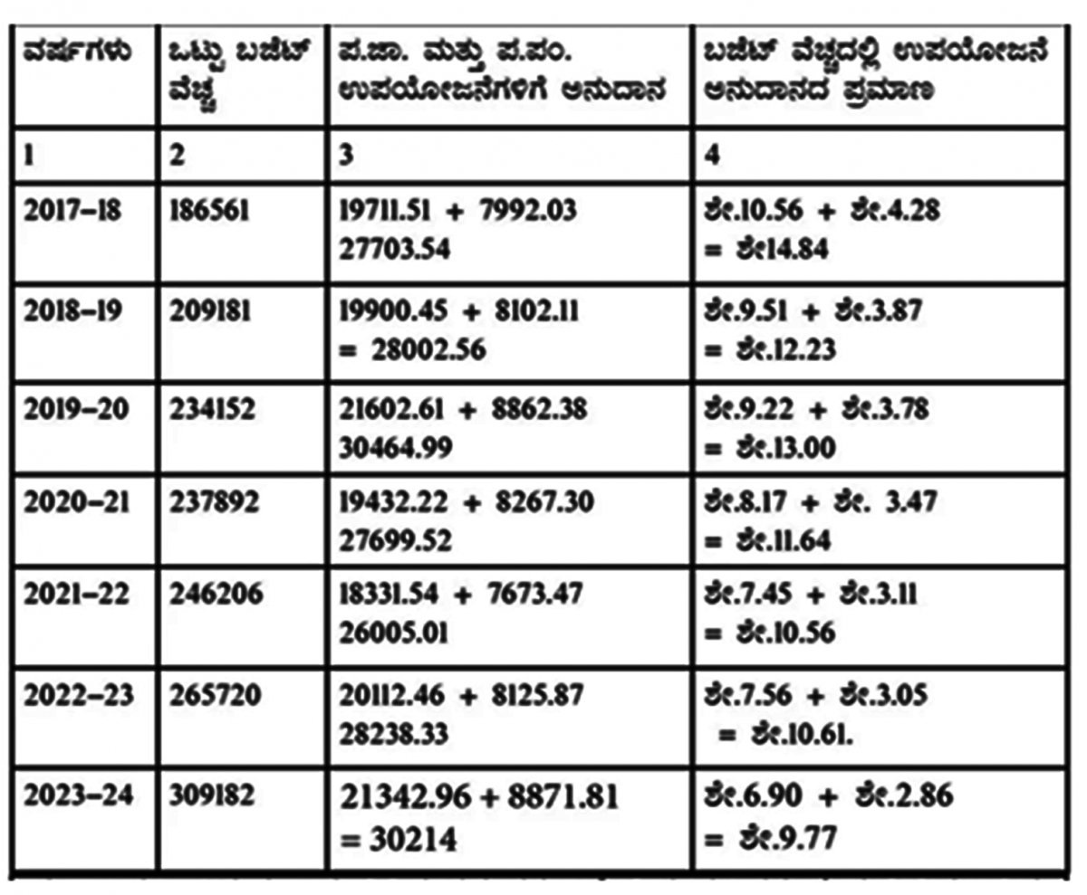 1. ಬಜೆಟ್ನ ಗಾತ್ರದ ಶೇ. 24.01ರಷ್ಟು ಅನುದಾನ ಮೀಸಲಿಡದಿರುವುದು.