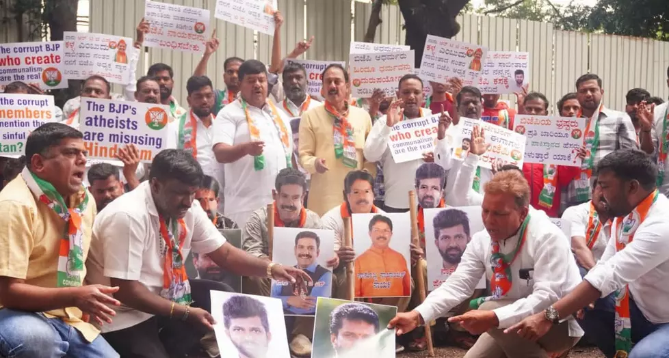 ಮದ್ದೂರು ಗಲಭೆ | ರಾಜಕೀಯ ಲಾಭಕ್ಕಾಗಿ ಬಳಸಿಕೊಳ್ಳುತ್ತಿರುವ ಬಿಜೆಪಿಯ ವಿರುದ್ಧ ಕಾಂಗ್ರೆಸ್ ಪ್ರತಿಭಟನೆ