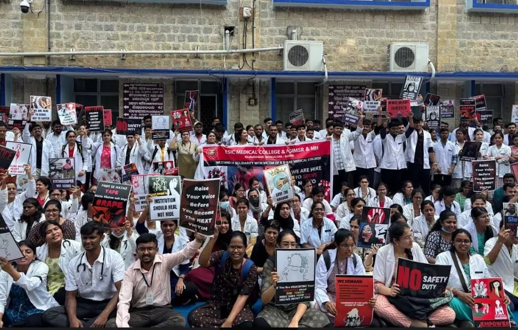 ಬೆಂಗಳೂರು | ವೈದ್ಯೆ ಮೇಲಿನ ಅತ್ಯಾಚಾರ, ಕೊಲೆ ಖಂಡಿಸಿ ವೈದ್ಯಕೀಯ ವಿದ್ಯಾರ್ಥಿಗಳ ಪ್ರತಿಭಟನೆ