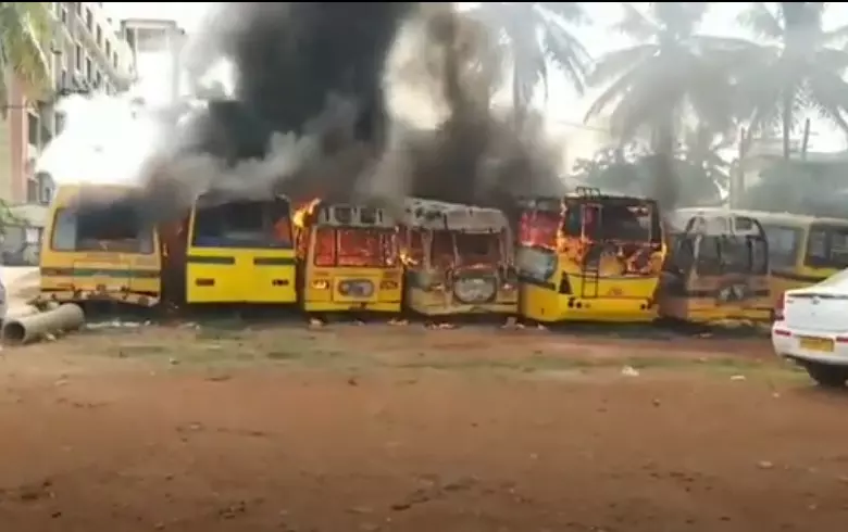 ಬೆಂಗಳೂರು | ಖಾಸಗಿ ನರ್ಸಿಂಗ್ ಕಾಲೇಜಿನ ಐದು ಬಸ್ಗಳು ಬೆಂಕಿಗಾಹುತಿ