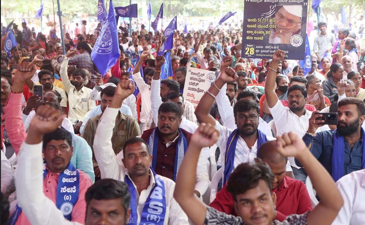 ಒಕ್ಕೂಟದ ರಾಜ್ಯ ಸಂಚಾಲಕ ಬಿ.ಆರ್.ಭಾಸ್ಕರ್ ಪ್ರಸಾದ್, ಕಾಂಗ್ರೆಸ್ ಸರಕಾರ ಅಧಿಕಾರಕ್ಕೆ ಬಂದ ಒಂದು ವರ್ಷದಲ್ಲಿ ದಲಿತರಿಗೆ ಮೀಸಲಿಟ್ಟ ಎಸ್ಸಿಎಸ್ಪಿ-ಟಿಎಸ್ಪಿ ಅನುದಾನದಲ್ಲಿ 26 ಸಾವಿರ ಕೋಟಿ ರೂ. ಗ್ಯಾರೆಂಟಿ ಯೋಜನೆಗಳಿಗೆ ಬಳಸಿಕೊಂಡಿದೆ. ಪ್ರತಿ ನಿತ್ಯ ದಲಿತರ ಮೇಲೆ ಕೊಲೆ ಮತ್ತು ದೌರ್ಜನ್ಯಗಳು ಹೆಚ್ಚಾಗುತ್ತಿದ್ದು, ರಕ್ಷಣೆಗೆ ಸರಕಾರ ಮುಂದಾಗಿಲ್ಲ ಎಂದರು.