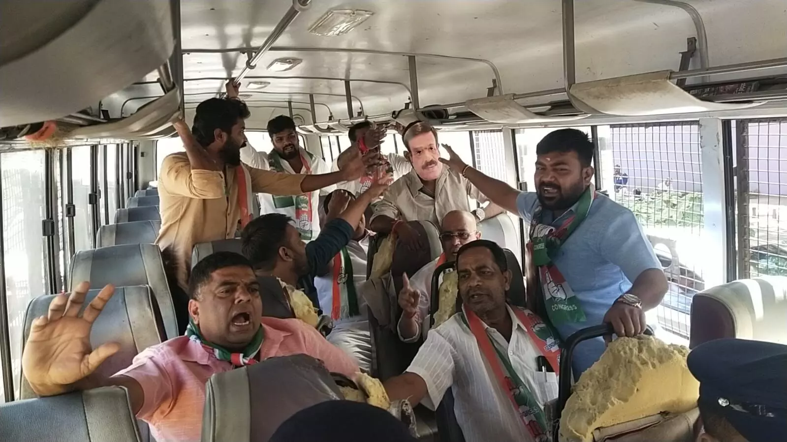 ಇಲ್ಲಿನ ಚಾಲುಕ್ಯ ವೃತ್ತ ದಲ್ಲಿನ ರೇಸ್ ಕೋರ್ಸ್ ರಸ್ತೆ ಭಾರತೀಯ ವಿದ್ಯಾ ಭವನ ಹಿಂಭಾಗದ ಜನಾರ್ದನ ರೆಡ್ಡಿ ಪಾರಿಜಾತ ನಿವಾಸದ ಎದುರು ದಿಢೀರ್ ಪ್ರತಿಭಟನೆ ನಡೆಸಿದ ಕಾಂಗ್ರೆಸ್ ಮುಖಂಡರು ಮತ್ತು ಕಾರ್ಯಕರ್ತರು ಮನೆಗೆ ಮುತ್ತಿಗೆ ಹಾಕಲು ಯತ್ನಿಸಿದರು.