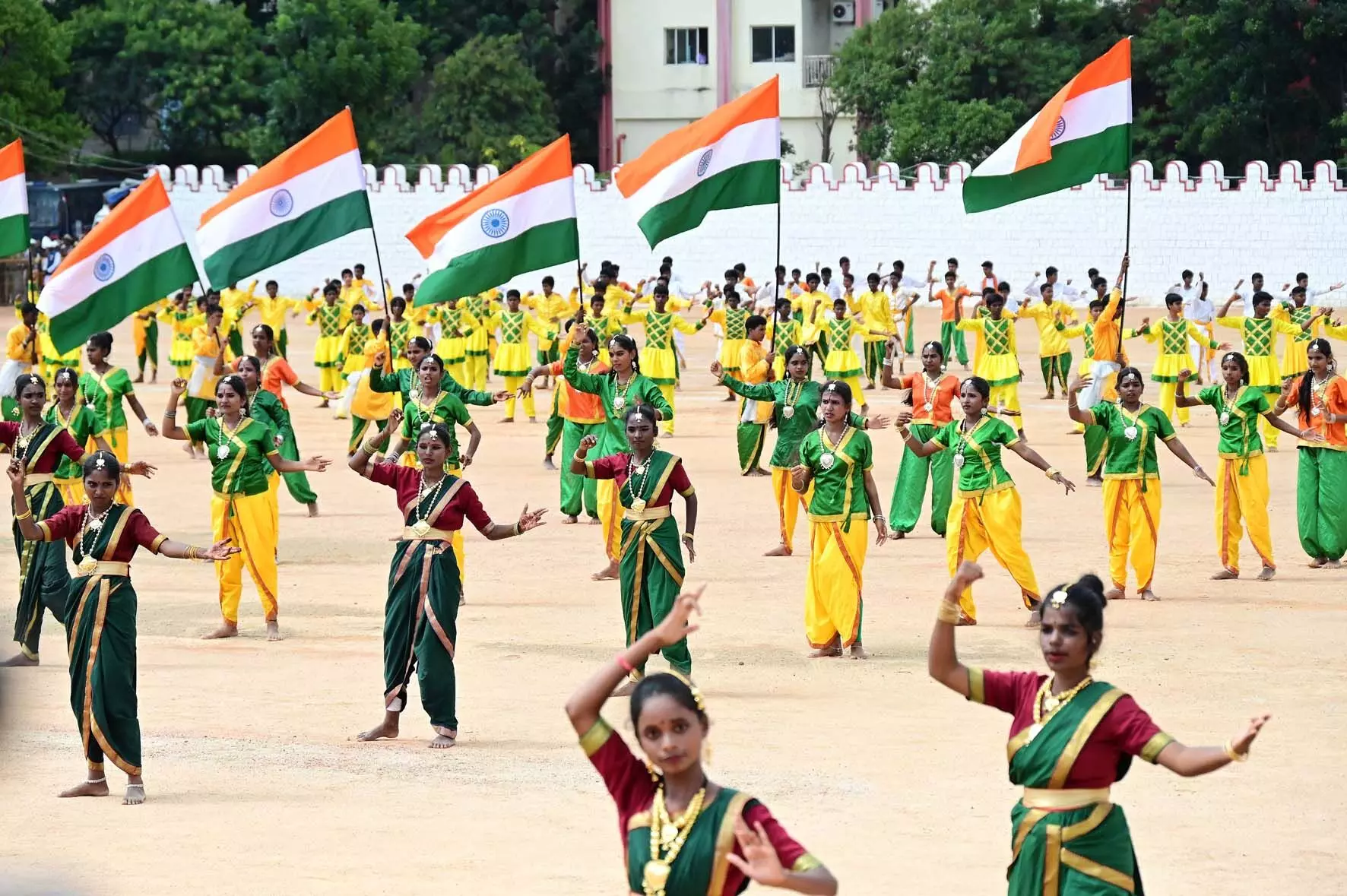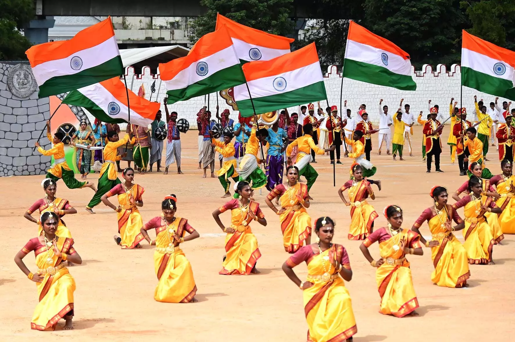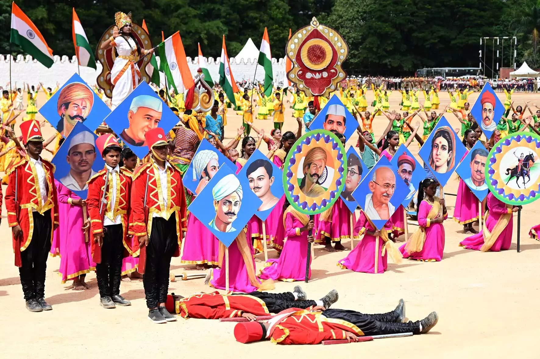 ಯಲಹಂಕದ ಸರಕಾರಿ ಪ್ರೌಢಶಾಲೆಯ 750 ವಿದ್ಯಾರ್ಥಿಗಳು ಕೆಂಪೇಗೌಡ ಪ್ರಶಸ್ತಿ ಪುರಸ್ಕೃತ ಮಹೇಶ್ ಕುಮಾರ್ ಟಿ. ನಿರ್ದೇಶನದಲ್ಲಿ ಮೂಡಿಬಂದ ‘ಜಯ ಭಾರತಿ' ಗೀತೆಗೆ ನೃತ್ಯವನ್ನು ಮಾಡಿದರು. ರಾಣಿ ಚನ್ನಮ್ಮ, ಸಂಗೊಳ್ಳಿ ರಾಯಣ್ಣನ ಬಲಿದಾನದ ಕುರಿತು ಗೀತೆಯಲ್ಲಿ ಸೇರಿಸಲಾಗಿತ್ತು. ವಿದ್ಯಾರ್ಥಿಗಳು ಸ್ವಾತಂತ್ರ್ಯ ಯೋಧ ಸುಭಾಷ್ ಚಂದ್ರ ಬೋಸ್ ಹಾಗೂ ಗಾಂಧೀ ಭಾವಚಿತ್ರಗಳನ್ನು ಹಿಡಿದು, ಮೈದಾನದಲ್ಲಿ ಕುಳಿತವರ ಕಣ್ಣ ಮುಂದೆ ಸ್ವಾತಂತ್ರ್ಯ ಹೋರಾಟವನ್ನು ನೆನಪಿಸುವಂತೆ ನೃತ್ಯ ಪ್ರದರ್ಶನ ಮಾಡಿದರು.