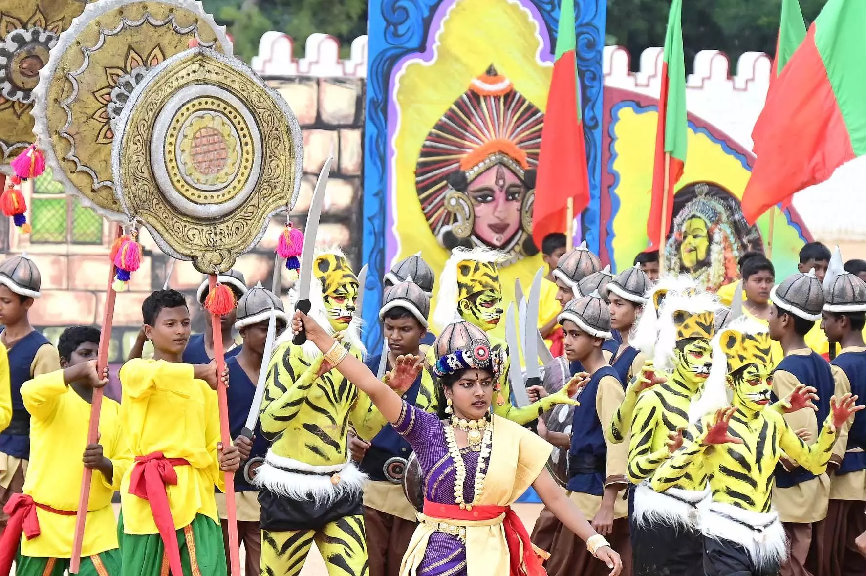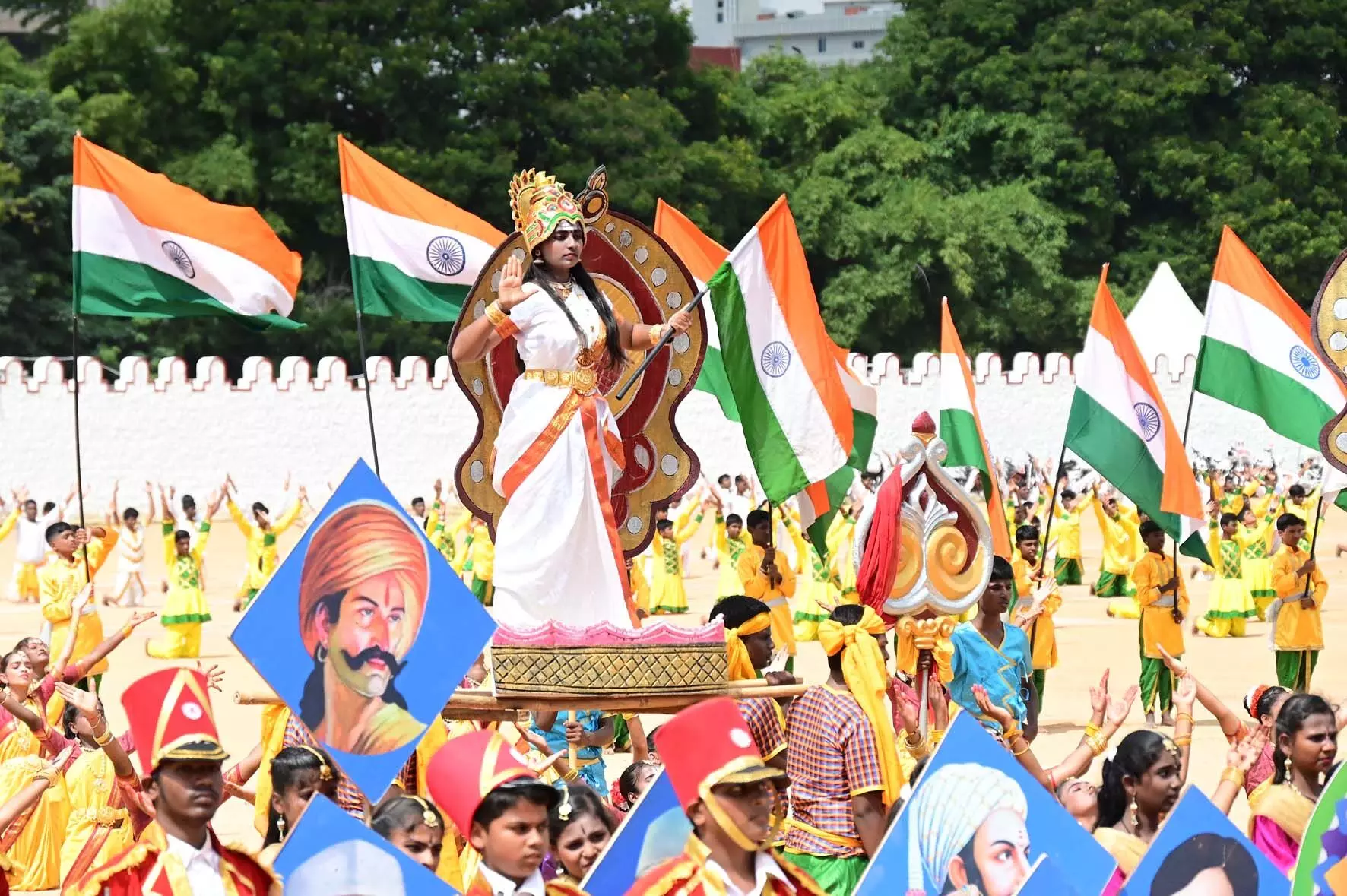 ರಾಣಿ ಅಬ್ಬಕ್ಕ ದೇವಿ ದೃಶ್ಯ ರೂಪಕ: ಕಪ್ಪ ಕಾಣಿಕೆಯನ್ನು ಸಲ್ಲಿಸಿ ಶರಣಾಗುವಂತೆ ಅಹಂಕಾರದಿಂದ ವರ್ತಿಸಿದ ಪೋರ್ಚುಗೀಸರ ವಿರುದ್ಧ ಸಿಡಿದೆದ್ದ ‘ಸ್ವಾತಂತ್ರ್ಯ ಹೋರಾಟಗಾರ್ತಿ ರಾಣಿ ಅಬ್ಬಕ್ಕ ದೇವಿ’ ಕುರಿತು ದೃಶ್ಯ ರೂಪಕವನ್ನು ಬಿಬಿಎಂಪಿ ಪಿಳ್ಳಣ್ಣ ಗಾರ್ಡನ್ ಸಂಯುಕ್ತ ಪದವಿ ಪೂರ್ವ ಕಾಲೇಜಿನ 700 ವಿದ್ಯಾರ್ಥಿಗಳು ಪ್ರದರ್ಶನ ಮಾಡಿದರು.