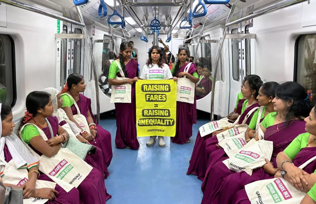 ರವಿವಾರ ನಮ್ಮ ಮೆಟ್ರೋದ ಪ್ರಯಾಣ ದರ ಏರಿಕೆಯನ್ನು ತಕ್ಷಣವೇ ಹಿಂಪಡೆಯಬೇಕೆಂದು ಆಗ್ರಹಿಸಿ, ಪ್ರಯಾಣಿಕರು ಮತ್ತು ಬೆಂಗಳೂರಿನ ನಾಗರಿಕರು ನಮ್ಮ ಮೆಟ್ರೋದ ಭೋಗಿಯೊಳಗೆ ಮೌನ ಪ್ರತಿಭಟನೆ ನಡೆಸಿದರು. ಪ್ರಯಾಣ ದರ ಏರಿಕೆಯ ನಂತರ ಮೆಟ್ರೋ ಪ್ರಯಾಣಿಕರ ಪ್ರಮಾಣ ಶೇ.13ರಷ್ಟು ಕುಸಿತ ಕಂಡಿದೆ. ಫೆಬ್ರವರಿಯಲ್ಲಿ ಪ್ರಯಾಣಿಕರ ಸಂಖ್ಯೆಯಲ್ಲಿ ಶೇ.20ರಷ್ಟು ಇಳಿಕೆ ಕಂಡುಬಂದಿದ್ದು, ಇದು ಪ್ರಯಾಣಿಕರಿಗೆ ಬೆಲೆ ಏರಿಕೆ ಹೊರೆಯಾಗಿದೆ ಎಂಬುದನ್ನು ಸೂಚಿಸುತ್ತಿದೆ ಎಂದು ಗ್ರೀನ್ಪೀಸ್ ತಿಳಿಸಿದೆ.