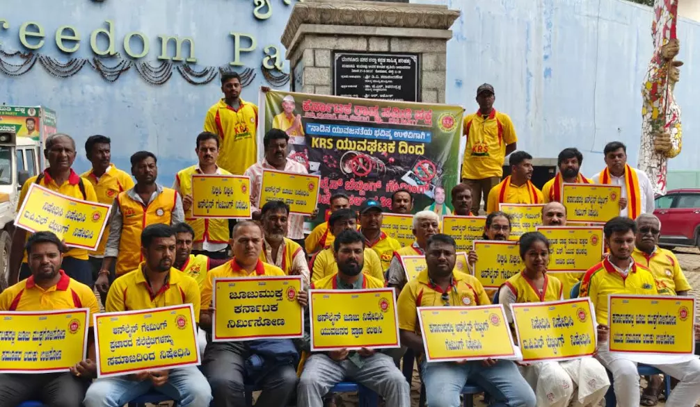 ಆನ್ಲೈನ್ ಬೆಟ್ಟಿಂಗ್ ನಿಷೇಧಿಸಲು ಆಗ್ರಹಿಸಿ ಕೆಆರ್ಎಸ್ ಧರಣಿ